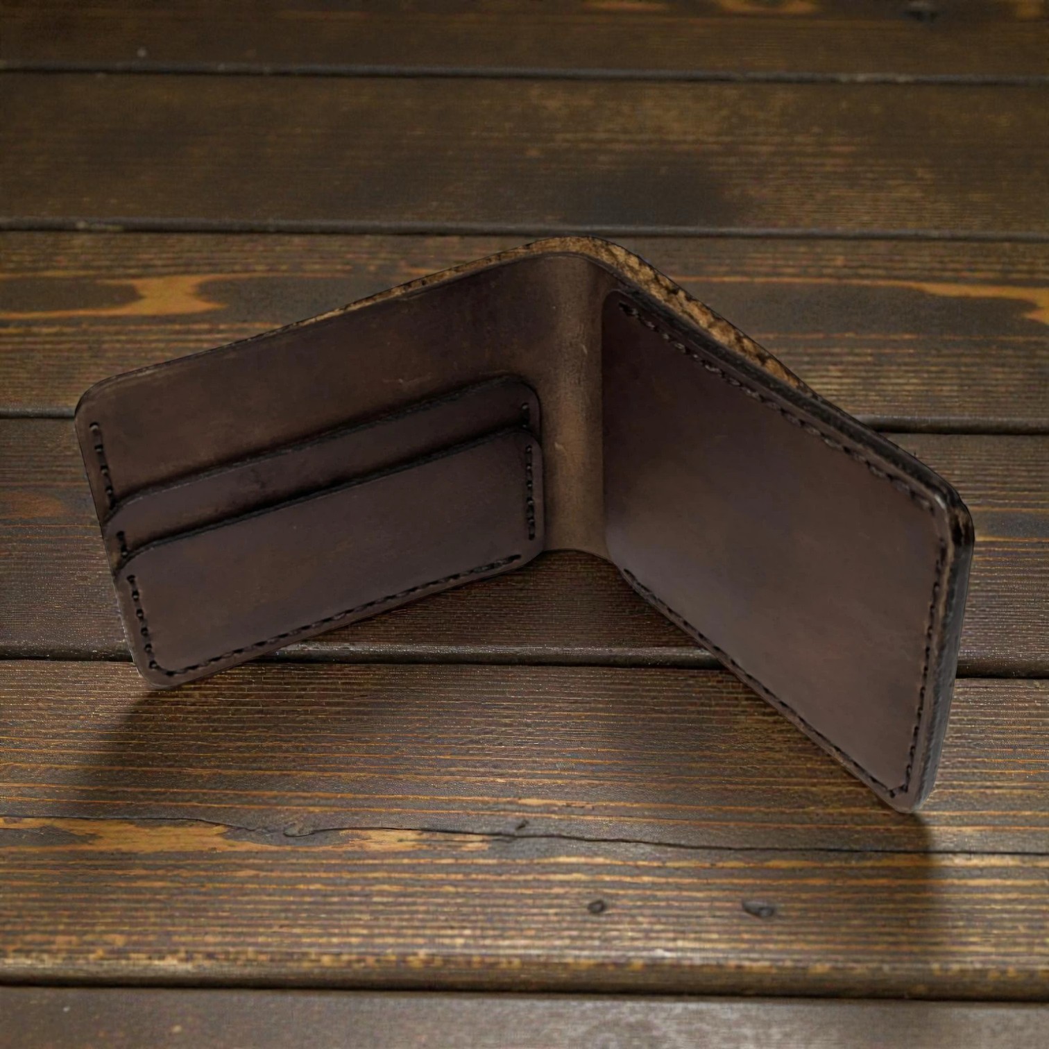 The leather is smooth and flexible from day one. It’s firm enough to hold its shape but soft enough to slide easily into your pocket and feel comfortable in your hand.