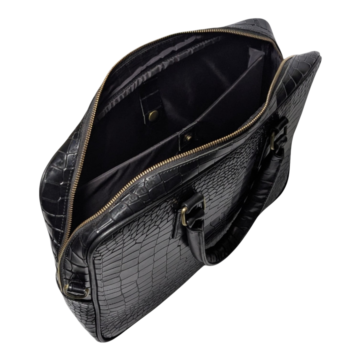 I designed this piece for those who value both impact and subtlety. The croc-embossed cowhide lends a sense of refined boldness, while the minimalist silhouette keeps it versatile and gender-neutral. It’s structured to protect your tech and essentials without compromising on aesthetics—perfect for the modern professional.