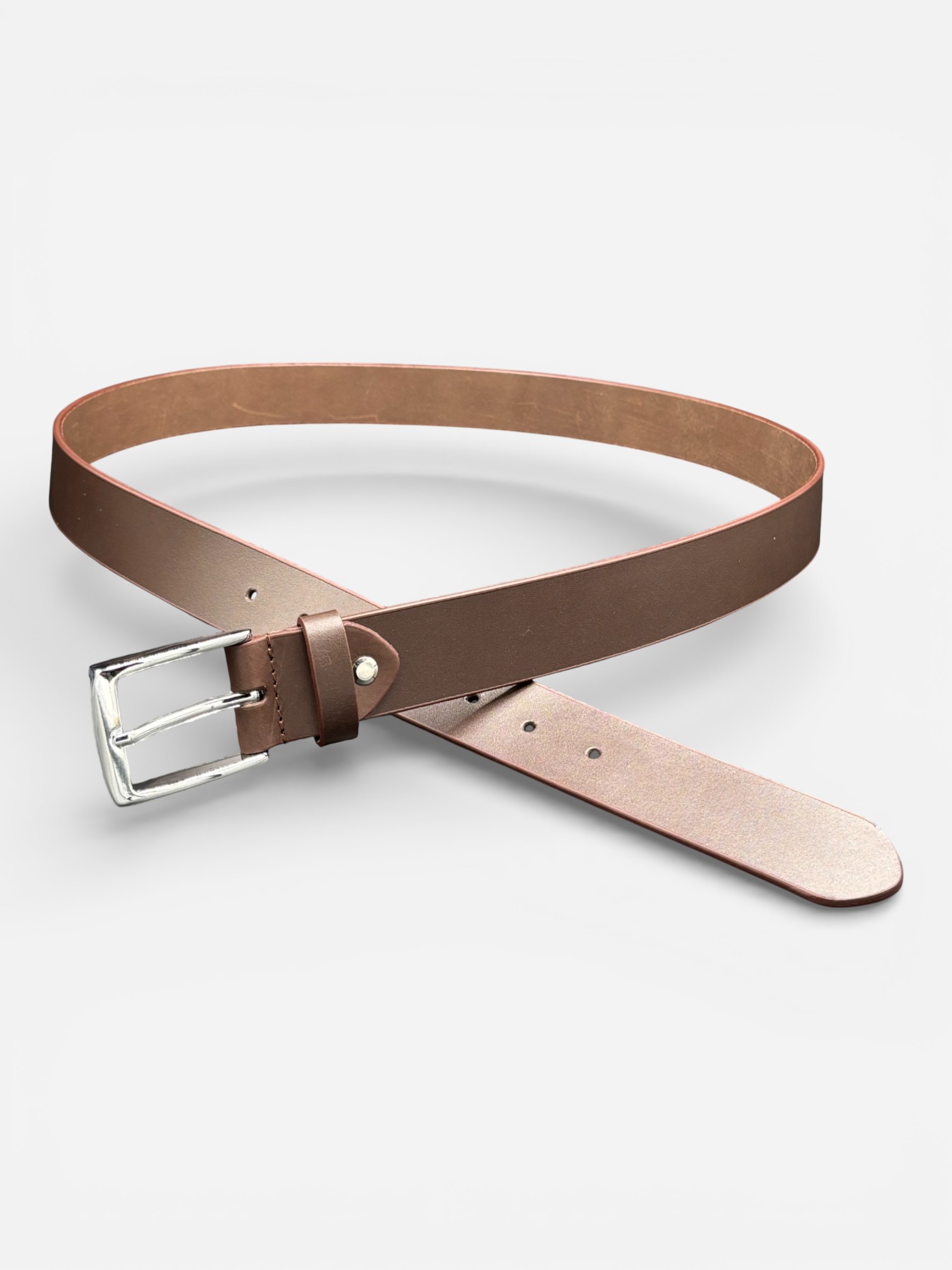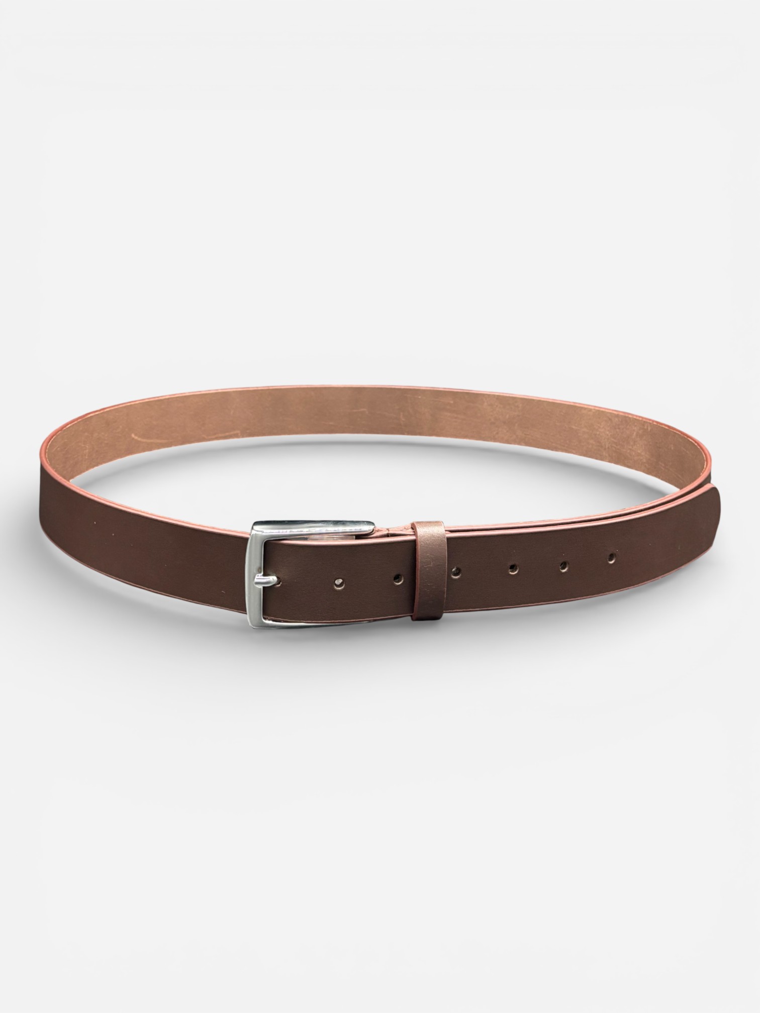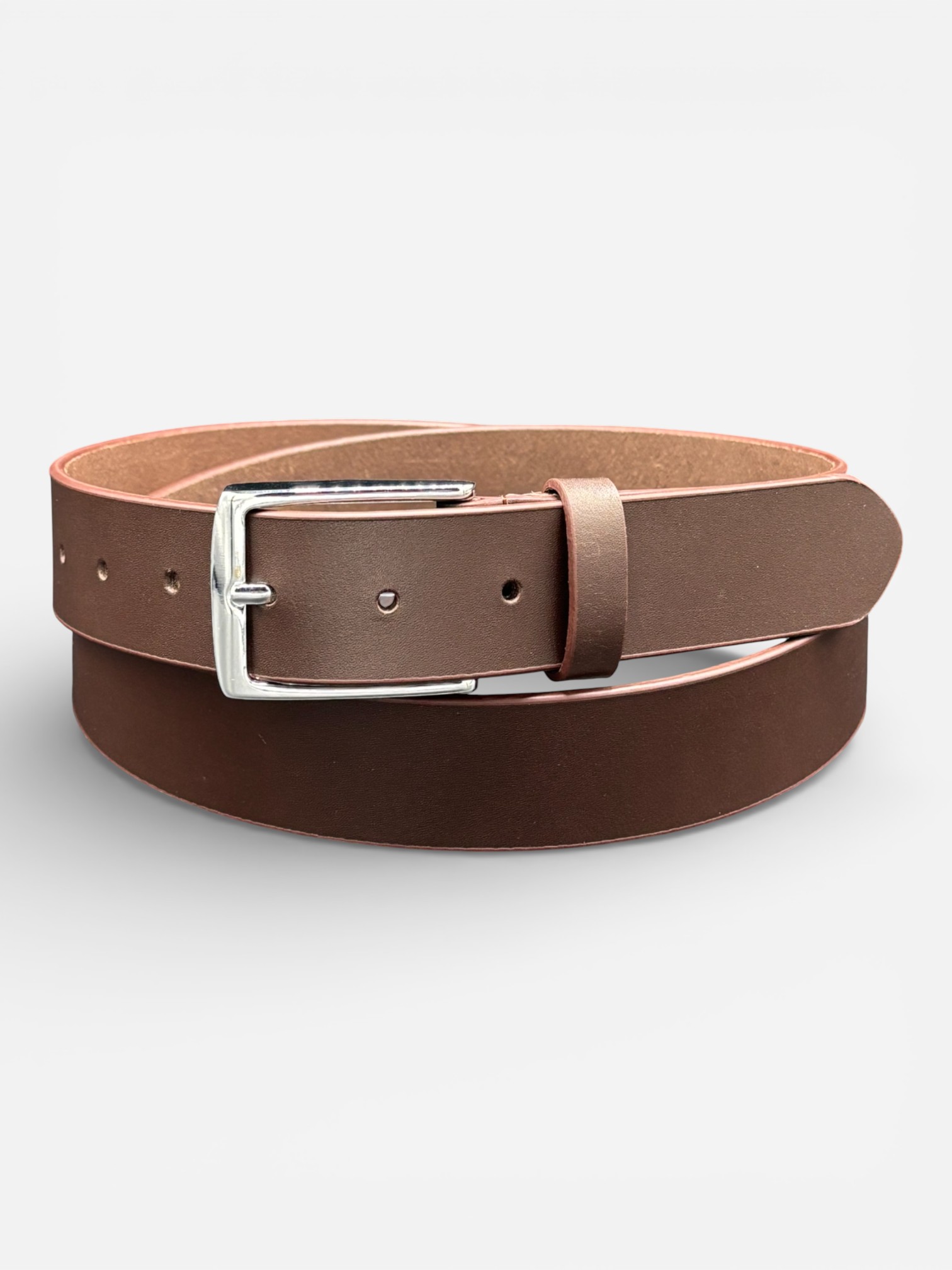 A belt that completes every outfit. Hand-crafted from smooth, genuine cowhide, this dark brown leather belt features a polished silver buckle and a refined finish that moves effortlessly from the office to the weekend. Simple, durable, and designed for everyday confidence. Features Made from 100 % genuine cowhide leather for lasting quality Rich dark-brown finish with smooth, elegant texture Polished silver buckle adds a clean, modern touch 1.4-inch width fits standard belt loops Reinforced stitching for strength and durability Adjustable design for a comfortable fit Ideal for formal suits, office wear, or casual jeans Hand-finished edges highlight expert craftsmanship Sleek minimalist design pairs easily with any wardrobe A timeless men’s accessory built to last