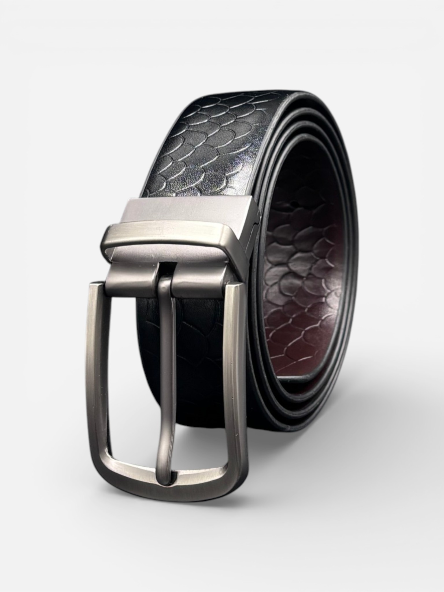 This men's reversible belt gives you two colors in one belt. One side is black and the other side is brown. It is made from 100% genuine cowhide leather, so it is strong, stylish, and built for daily use.Key FeaturesReversible design: Black side and Brown side100% genuine cowhide leatherDurable metal buckle with clean modern lookEasy to match with formal and casual outfitsPremium stitching and long-lasting finish
