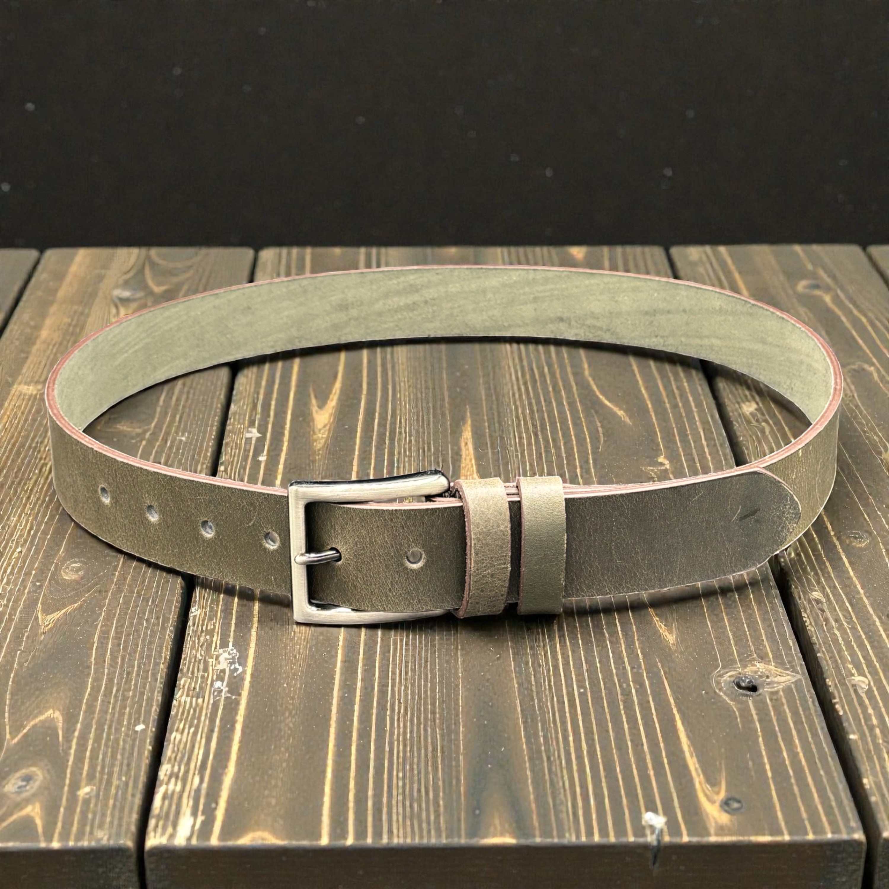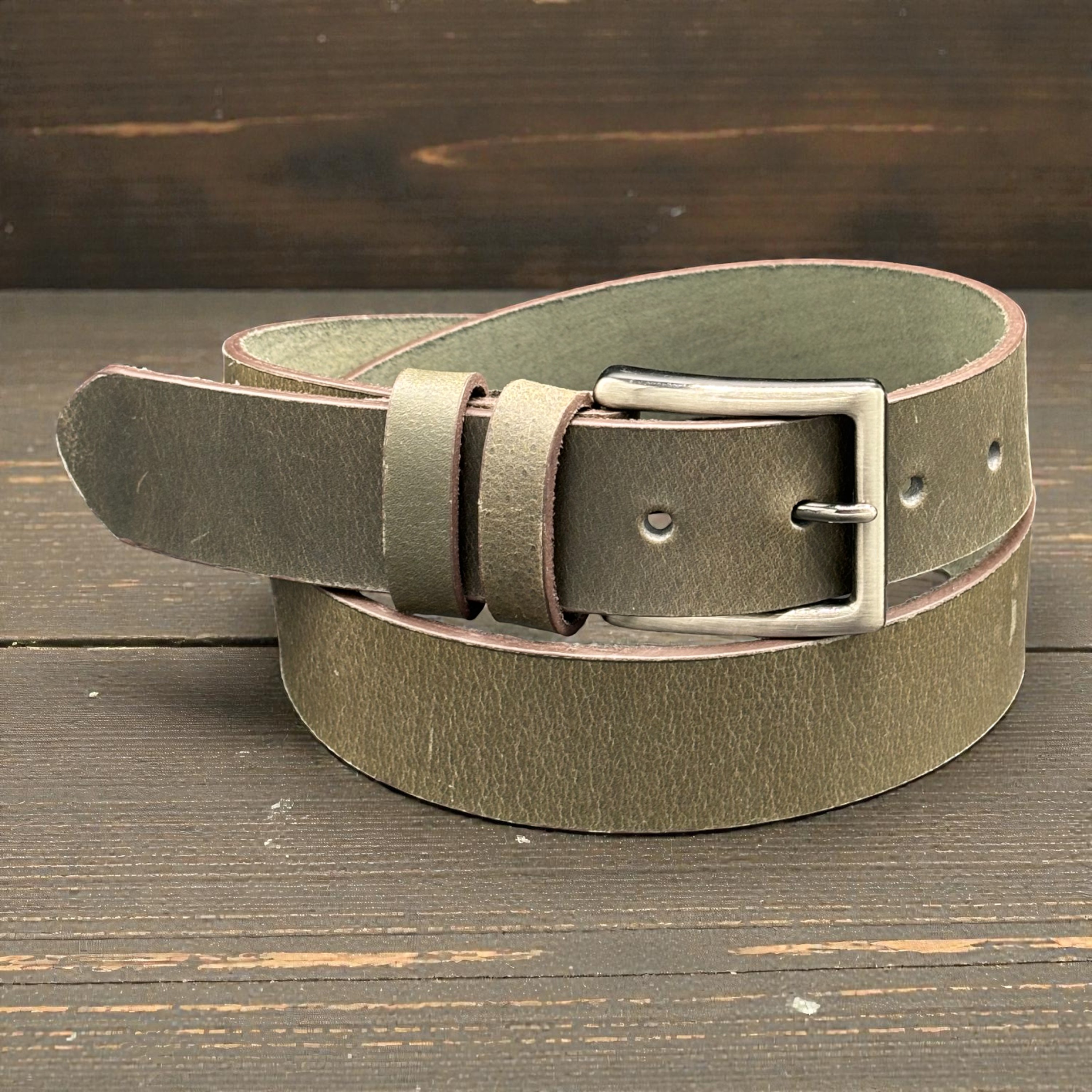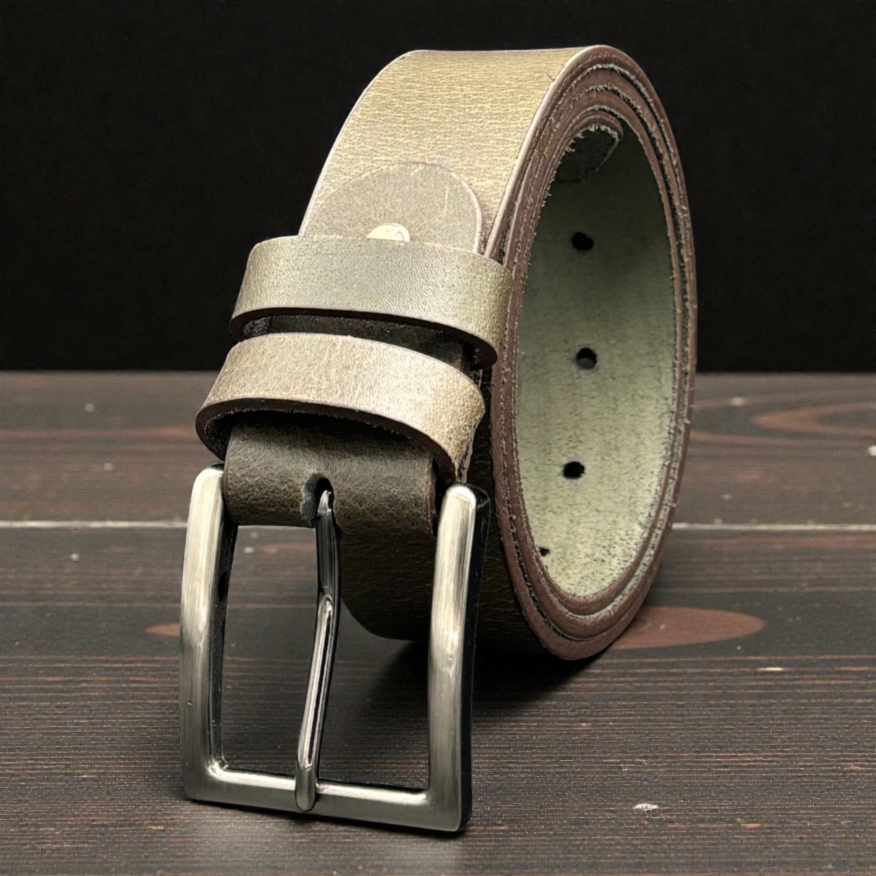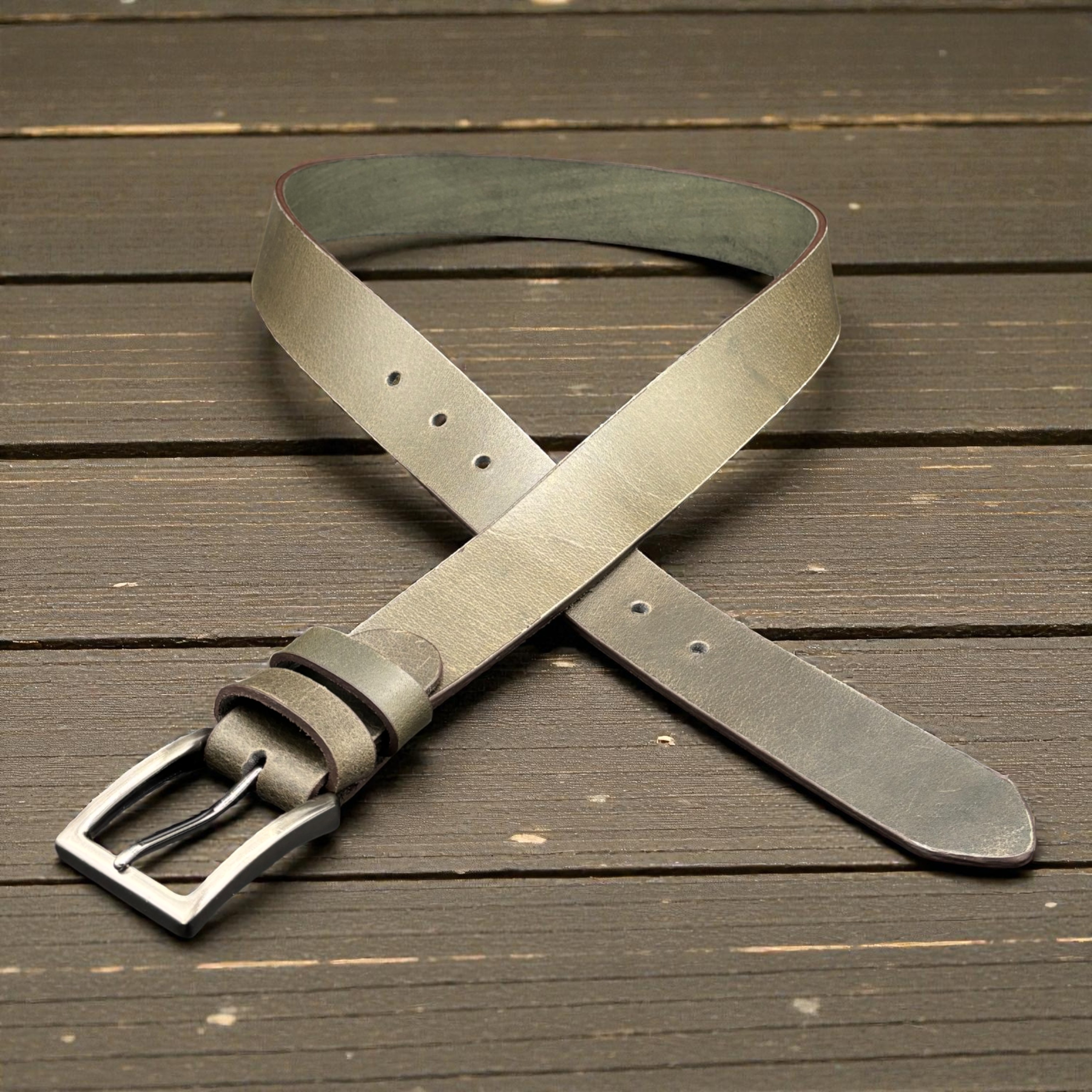 Introduce a touch of earthy sophistication to your accessories collection with this premium Olive Green Full-Grain Leather Belt. The deep, muted olive tone offers a superb alternative to traditional brown or black, providing a subtle, stylish anchor for both casual and smart-casual looks. This belt is constructed from a solid piece of full-grain leather, guaranteeing maximum durability and ensuring it will comfortably mold to your body over time, developing a unique character.