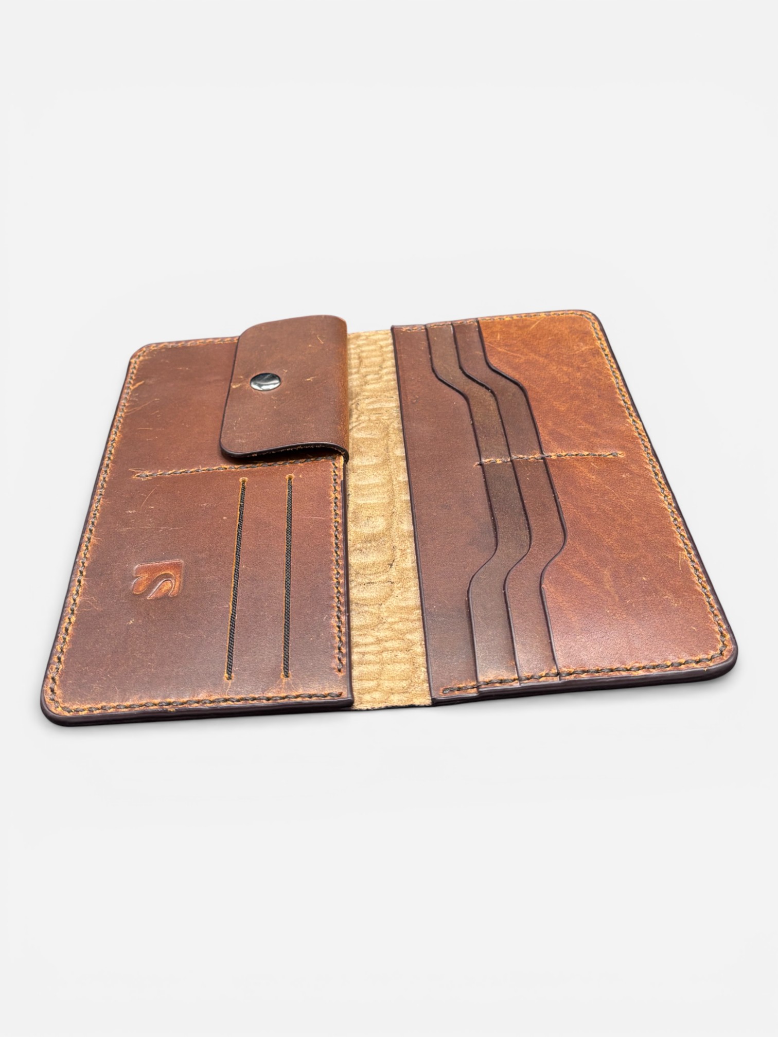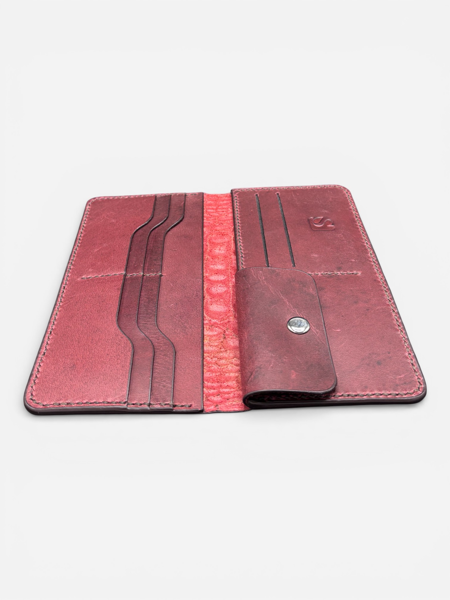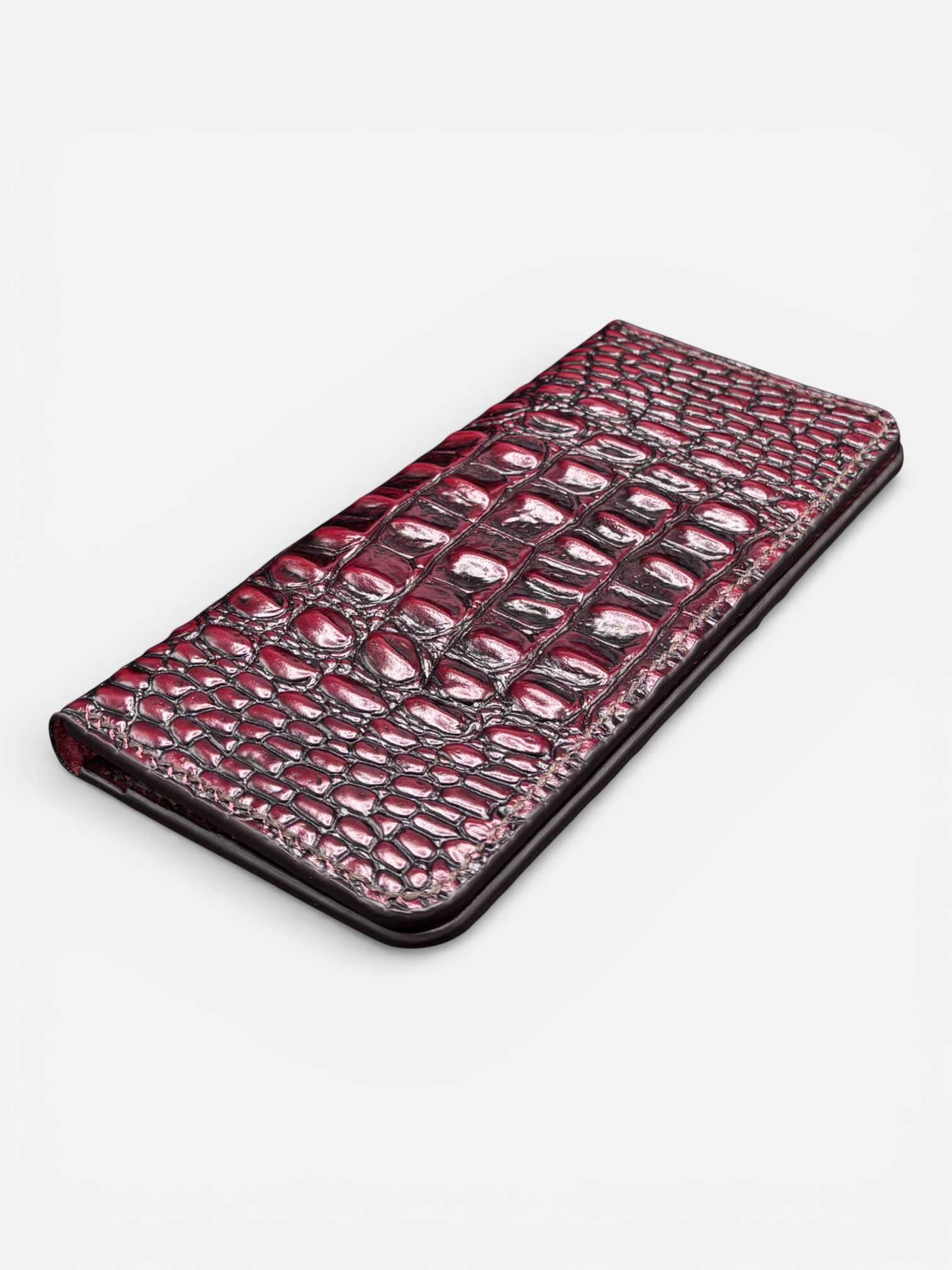 This long leather wallet is made for daily use and smart style. It is handcrafted from 100% genuine cowhide leather and finished with a rich croc texture.Key Features100% genuine cowhide leatherPremium croc-texture exteriorMultiple card slots for better organizationSecure snap-button coin pocketSlim long format for cash and cardsColors: Burgundy and Tan