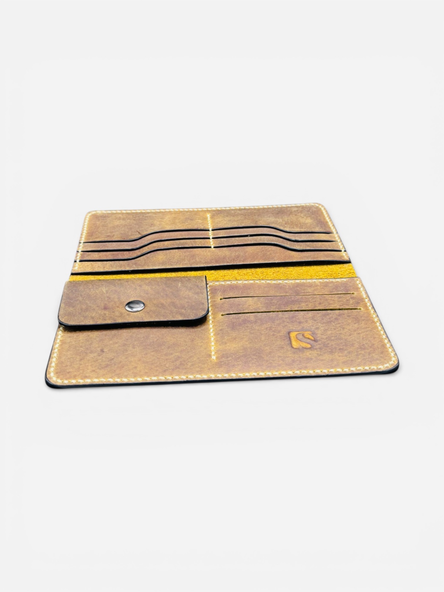This full grain long wallet is made from 100% genuine cowhide leather. It is slim, strong, and easy to carry every day. Inside, you get multiple card slots, note compartments, and a secure coin pocket for daily use.