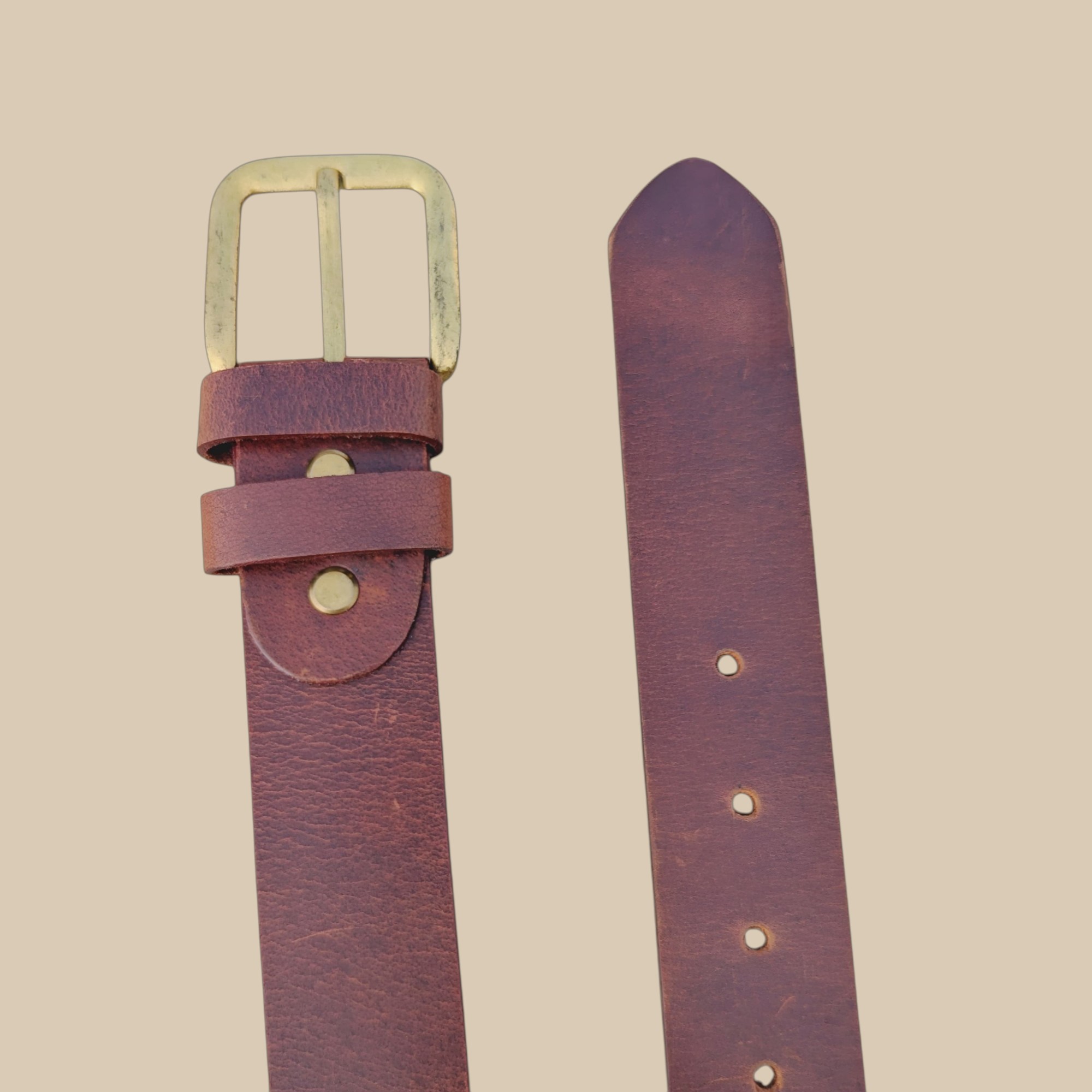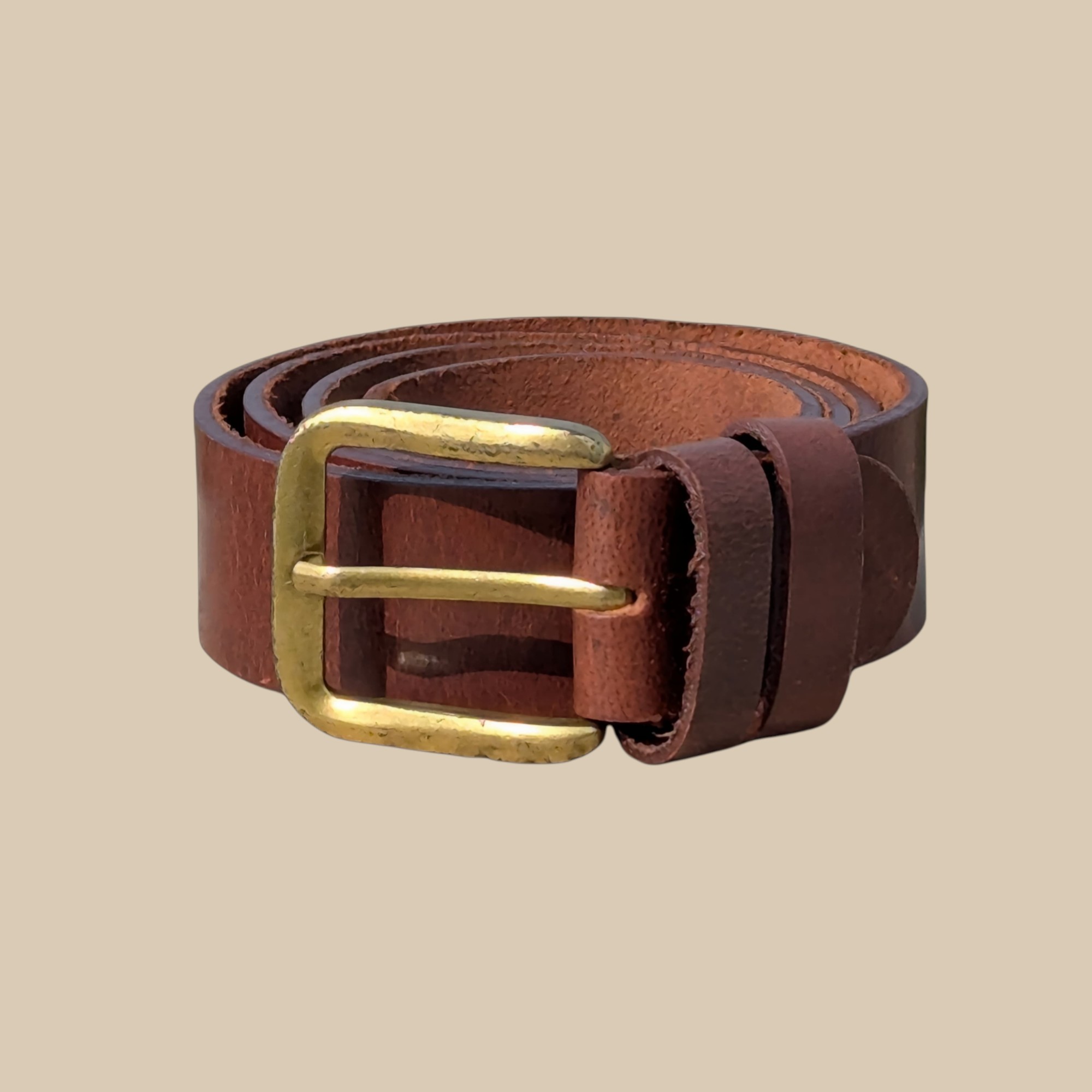 This full-grain leather belt is handcrafted from premium cowhide leather and finished with a solid brass buckle. Built to last, it combines strength, comfort, and timeless style, making it perfect for jeans, the office, or formal wear.