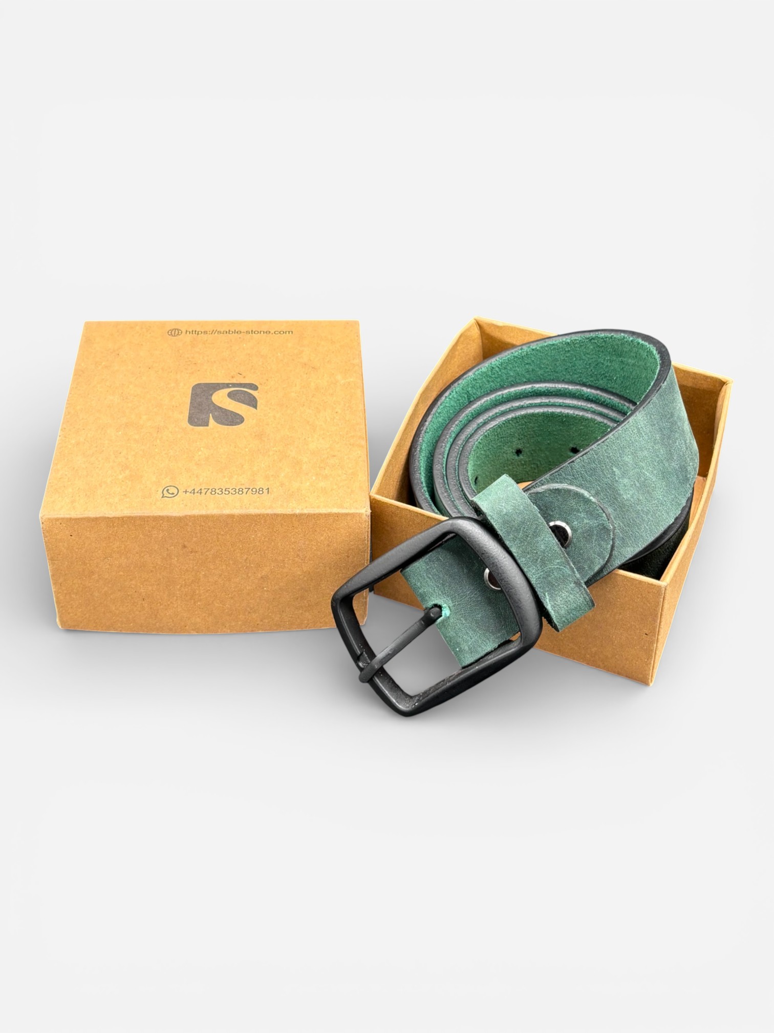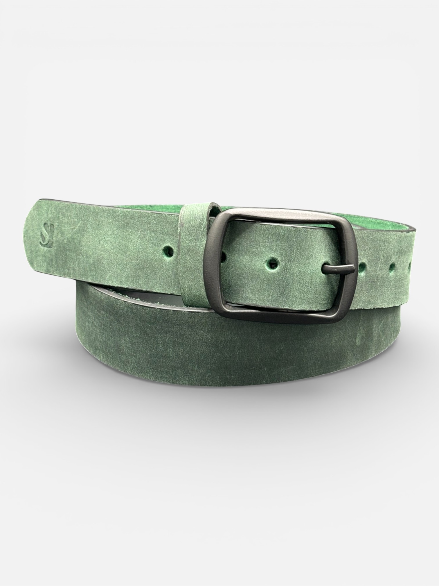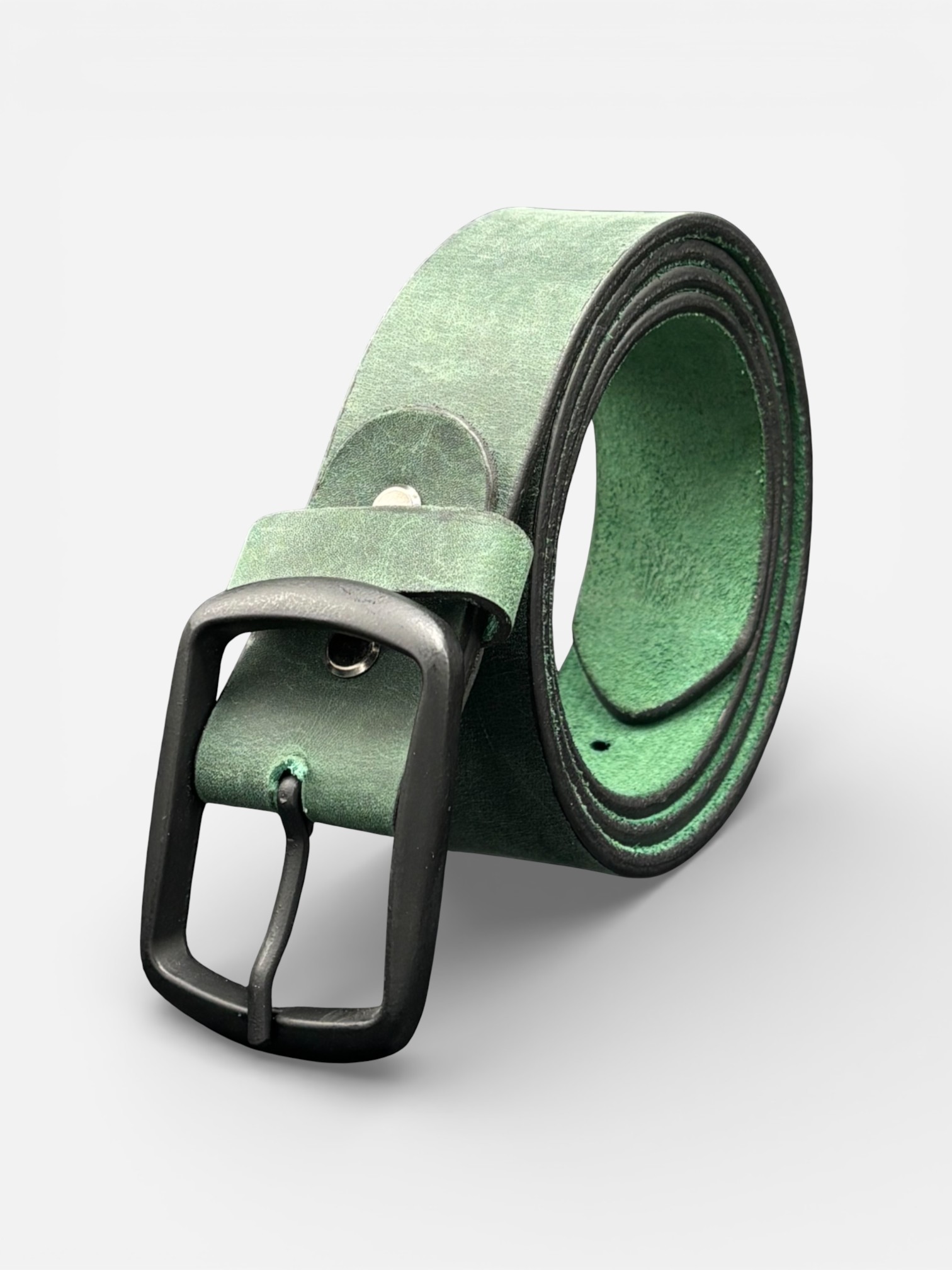 Green Leather Belt, Black Buckle