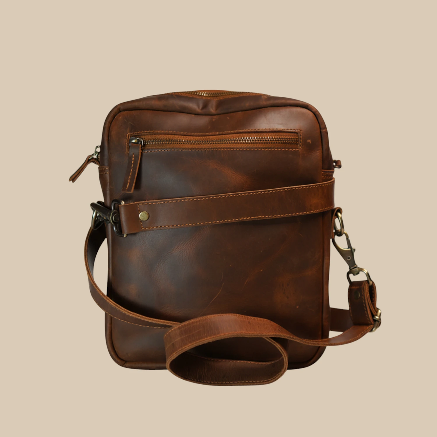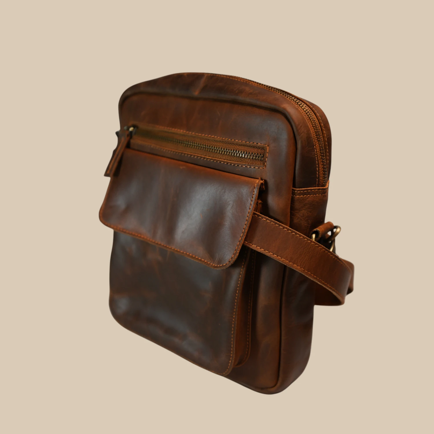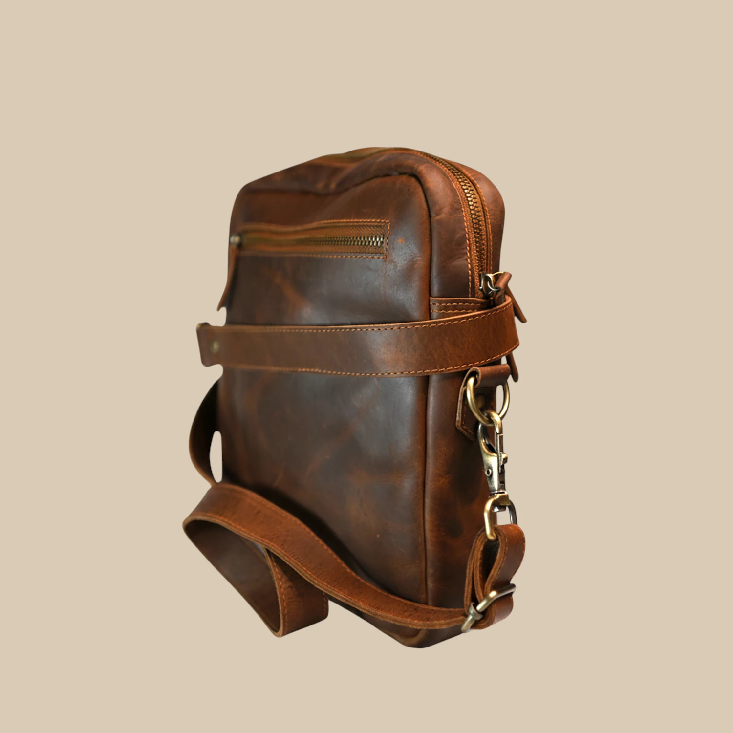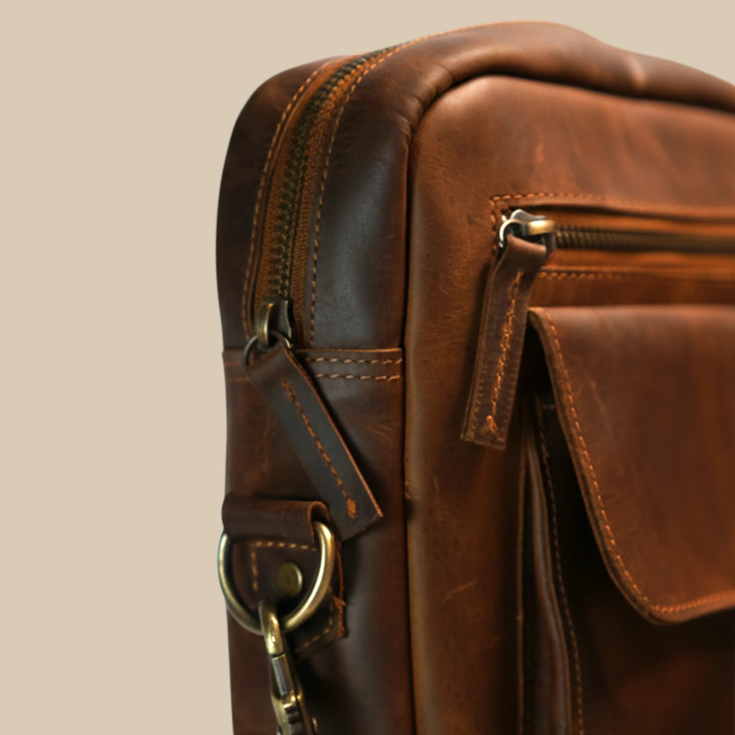 Your search for the perfect daily companion ends here. The Urban Explorer is a classic leather messenger bag that blends rugged, vintage style with modern functionality. Crafted from 100% pure cowhide leather, it offers a premium feel and a rich, distressed texture that is not only a pleasure to touch but is also incredibly durable. Over time, the leather will develop a unique patina, a visual history of your daily adventures.