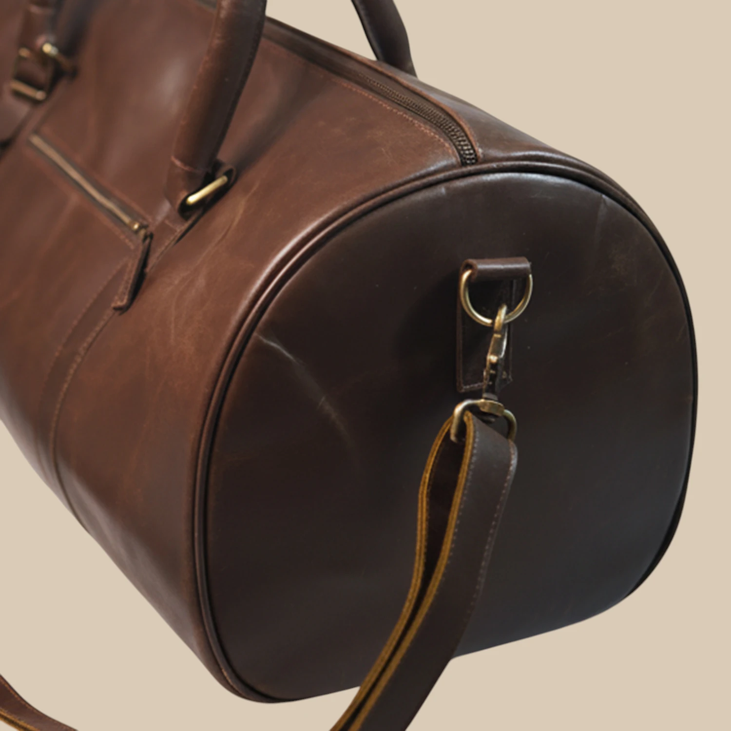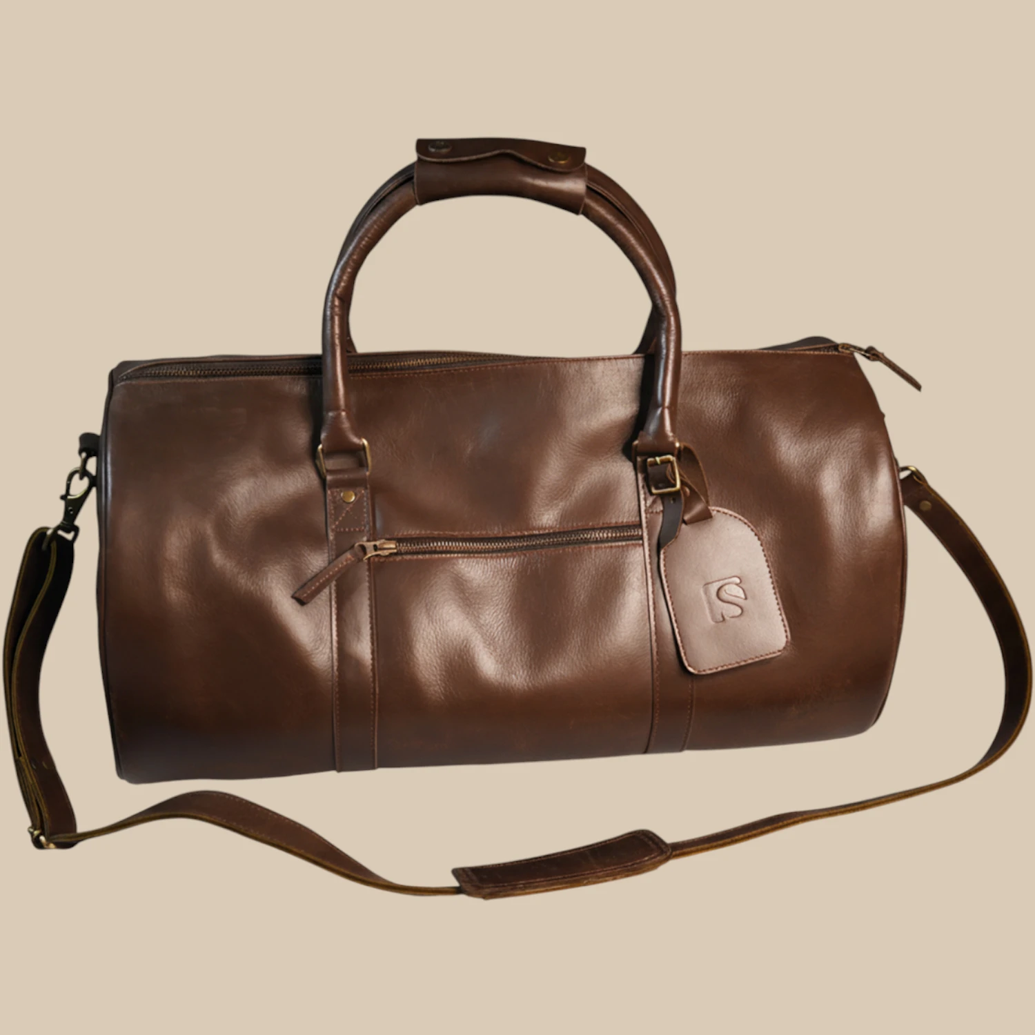 Embark on your next adventure in style with this handcrafted leather duffel bag. Made from 100% genuine cow leather, its timeless cylindrical design is perfect for weekend getaways, business trips, or the gym.