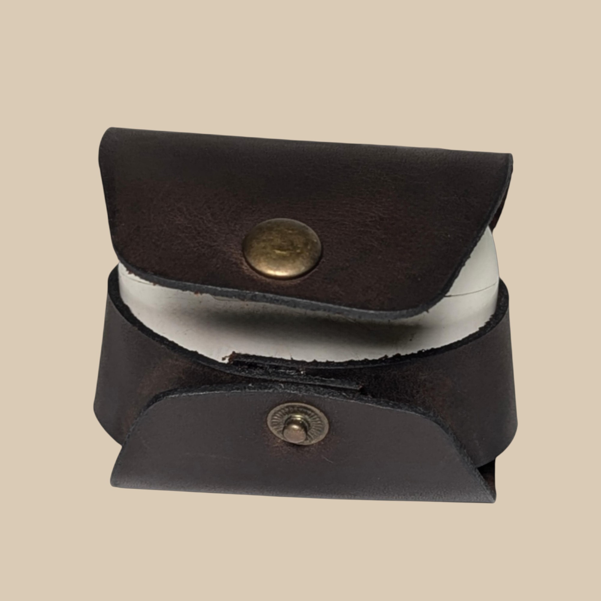 The design is compact and practical, made to fit AirPods and most wireless earbuds. The secure brass snap closure adds a classic touch while keeping your earbuds firmly in place. Inside, a soft lining protects your device from scratches, so it stays clean and safe whether you’re traveling or using it every day.