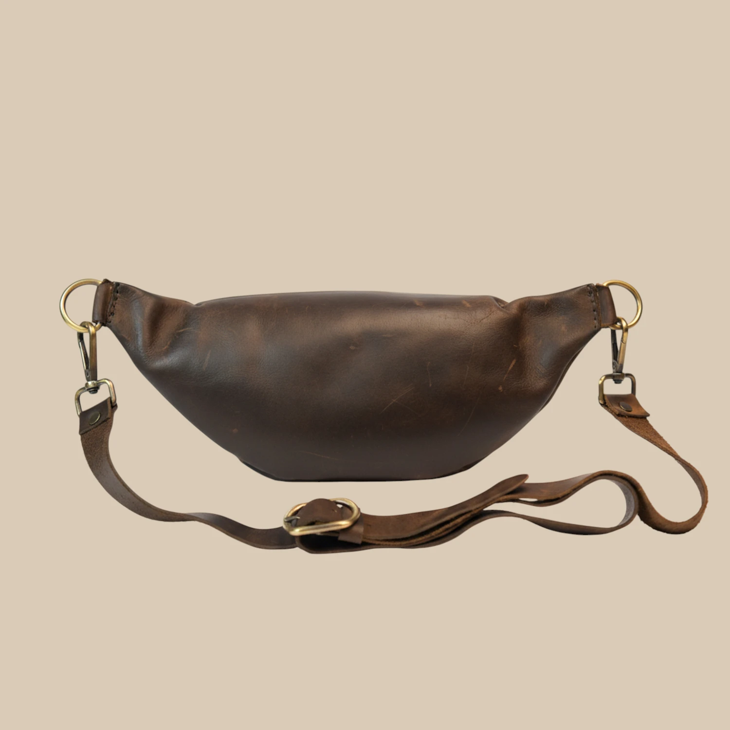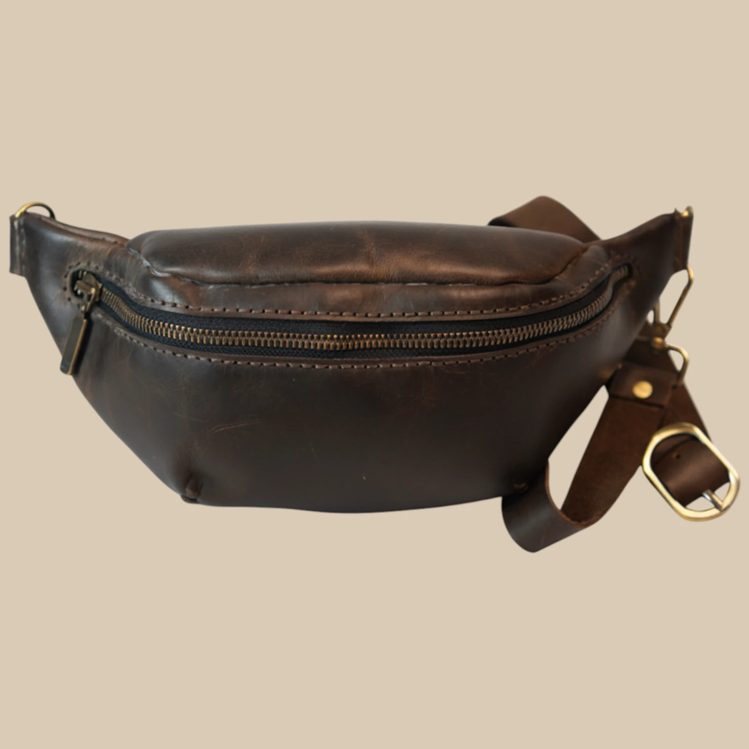 Keep your essentials close with this classic leather fanny pack. Crafted from genuine cowhide, its compact size and hands-free design are perfect for travel, festivals, or a day out.