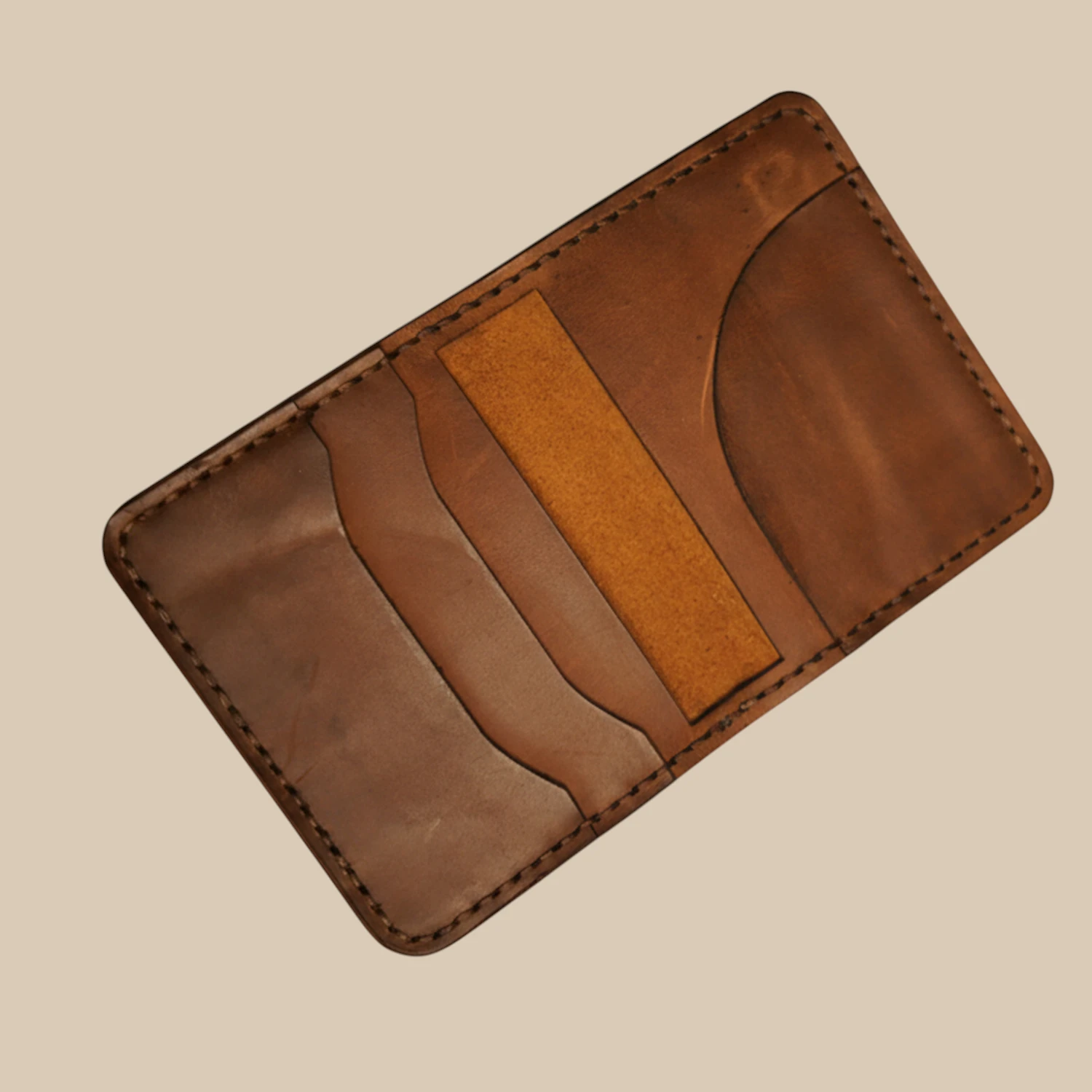 This is more than just a card holder; it's a commitment to minimalism. The Essential Leather Mini Wallet is for those who believe in carrying only what they need, without compromising on quality or style. Made from 100% pure cowhide leather, it offers a luxurious feel and a rich, natural color that will age beautifully. As you use it, the leather will develop a unique patina, a visual history of your daily adventures.