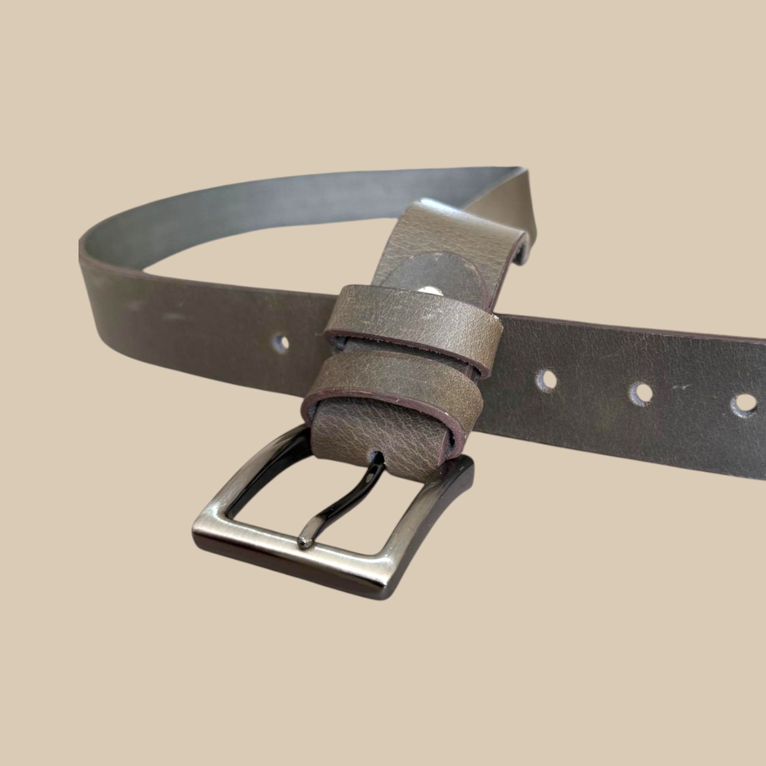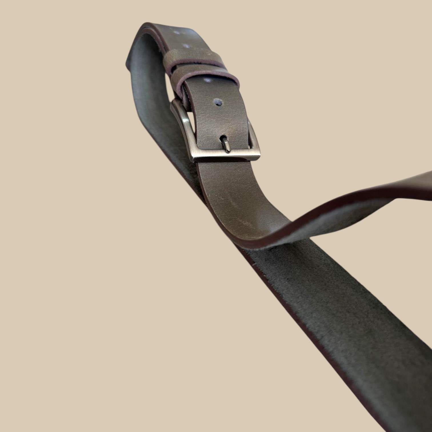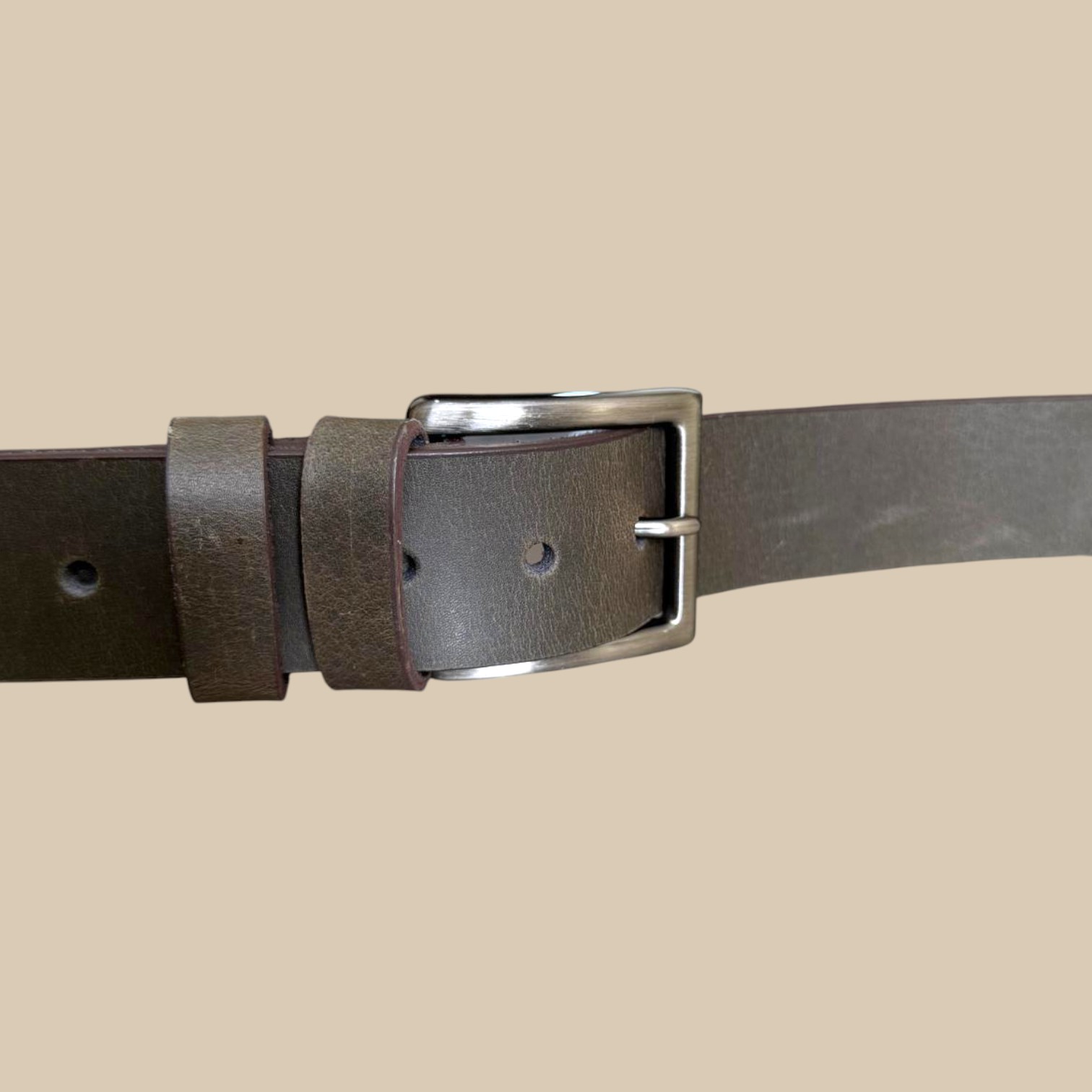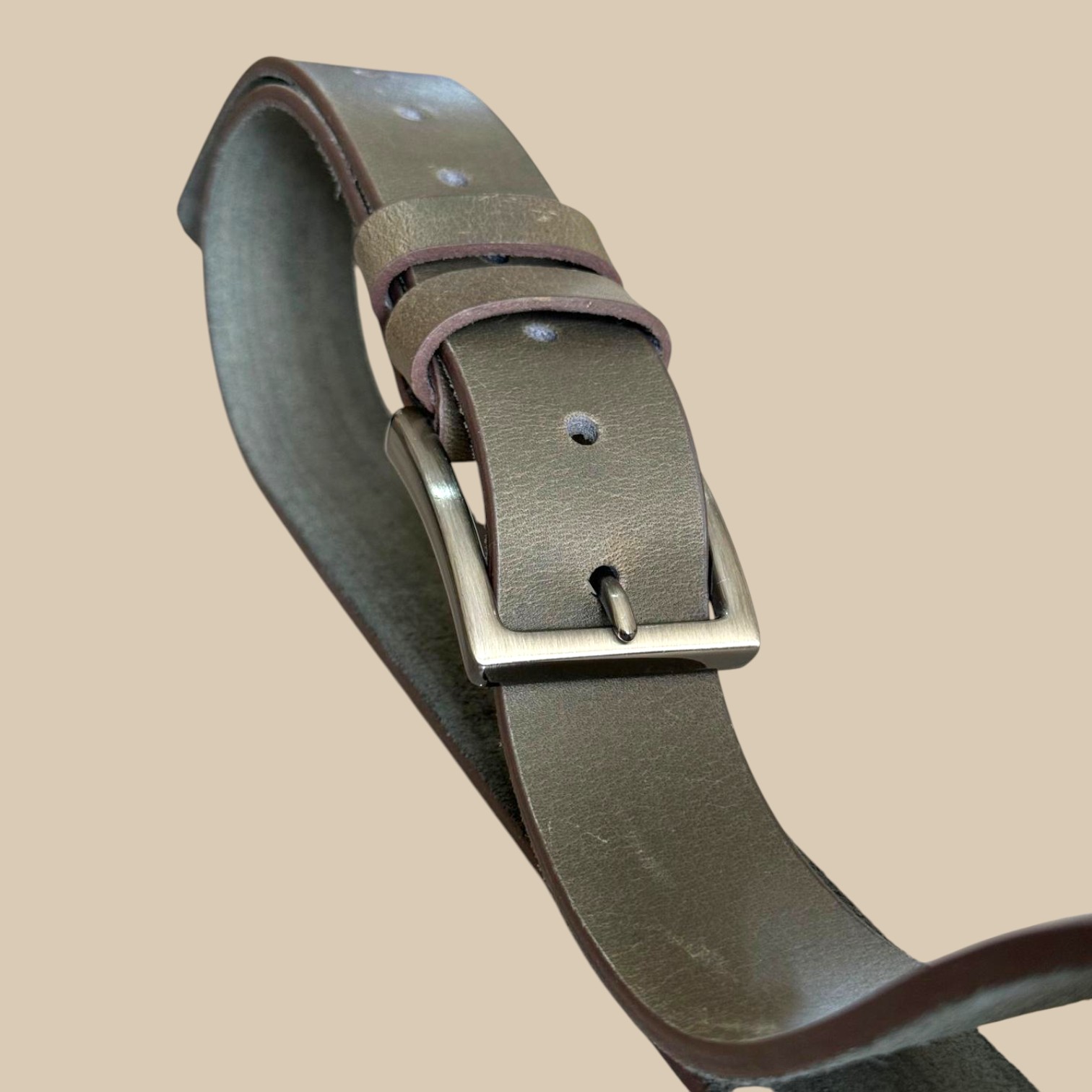 Introduce a touch of earthy sophistication to your accessories collection with this premium Olive Green Full-Grain Leather Belt. The deep, muted olive tone offers a superb alternative to traditional brown or black, providing a subtle, stylish anchor for both casual and smart-casual looks. This belt is constructed from a solid piece of full-grain leather, guaranteeing maximum durability and ensuring it will comfortably mold to your body over time, developing a unique character.