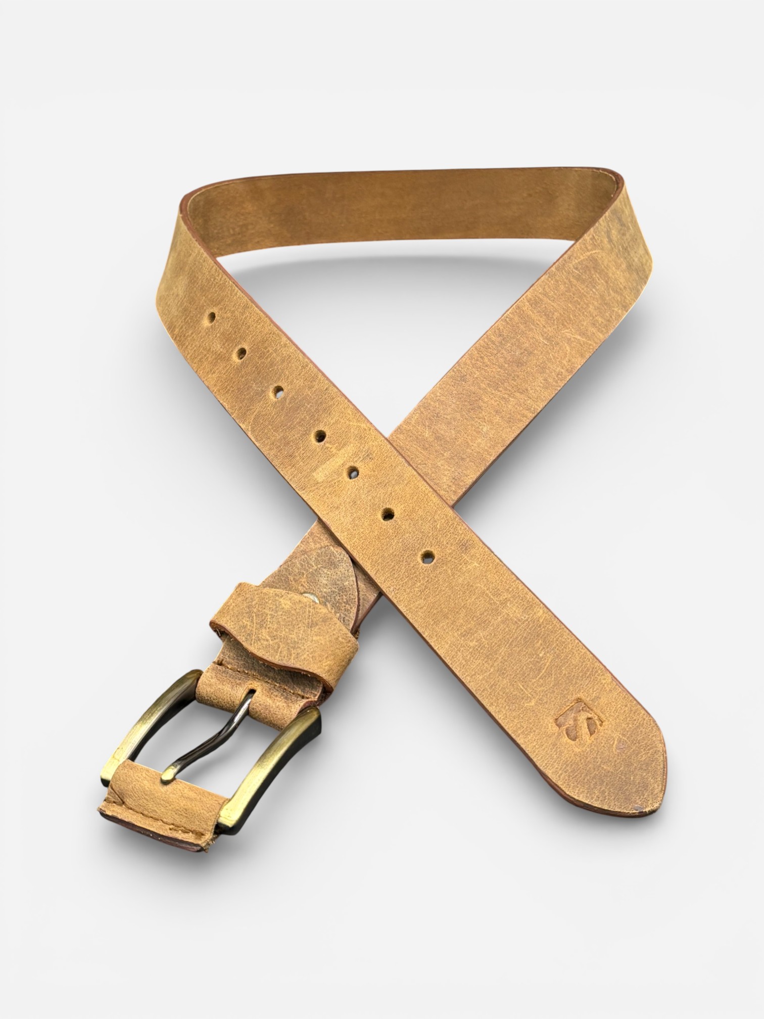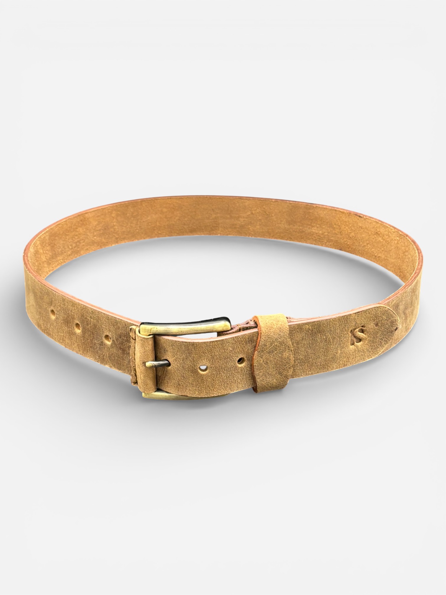 This brown patina brass leather belt is crafted from genuine cow leather and finished with a solid brass buckle. A versatile men’s accessory for casual and formal outfits. Features Made from genuine cow leather with natural patina finish Strong solid brass buckle built to last Classic brown color for easy styling Comfortable fit for daily wear Works with both formal and casual outfits Premium quality men’s belt with timeless appeal