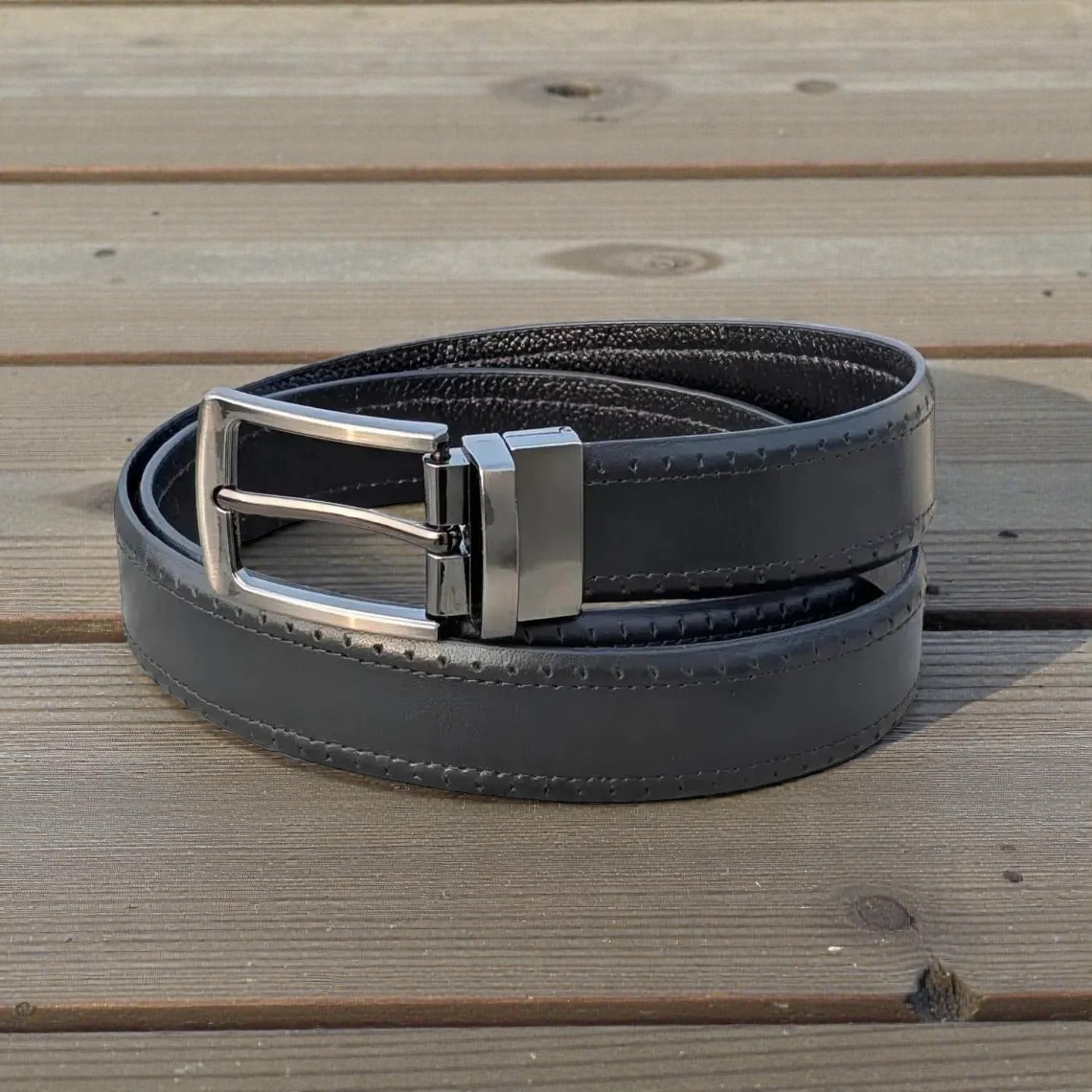 When it comes to men’s accessories, versatility is everything. This Reversible Black Leather Belt is designed for the man who values quality and practicality in equal measure. Crafted from premium cowhide leather, it offers a smooth finish on one side and a subtle textured grain on the reverse, giving you two distinct styles in a single, reliable belt.