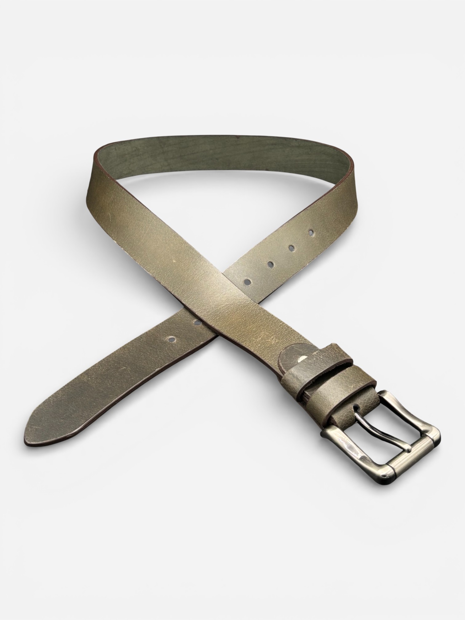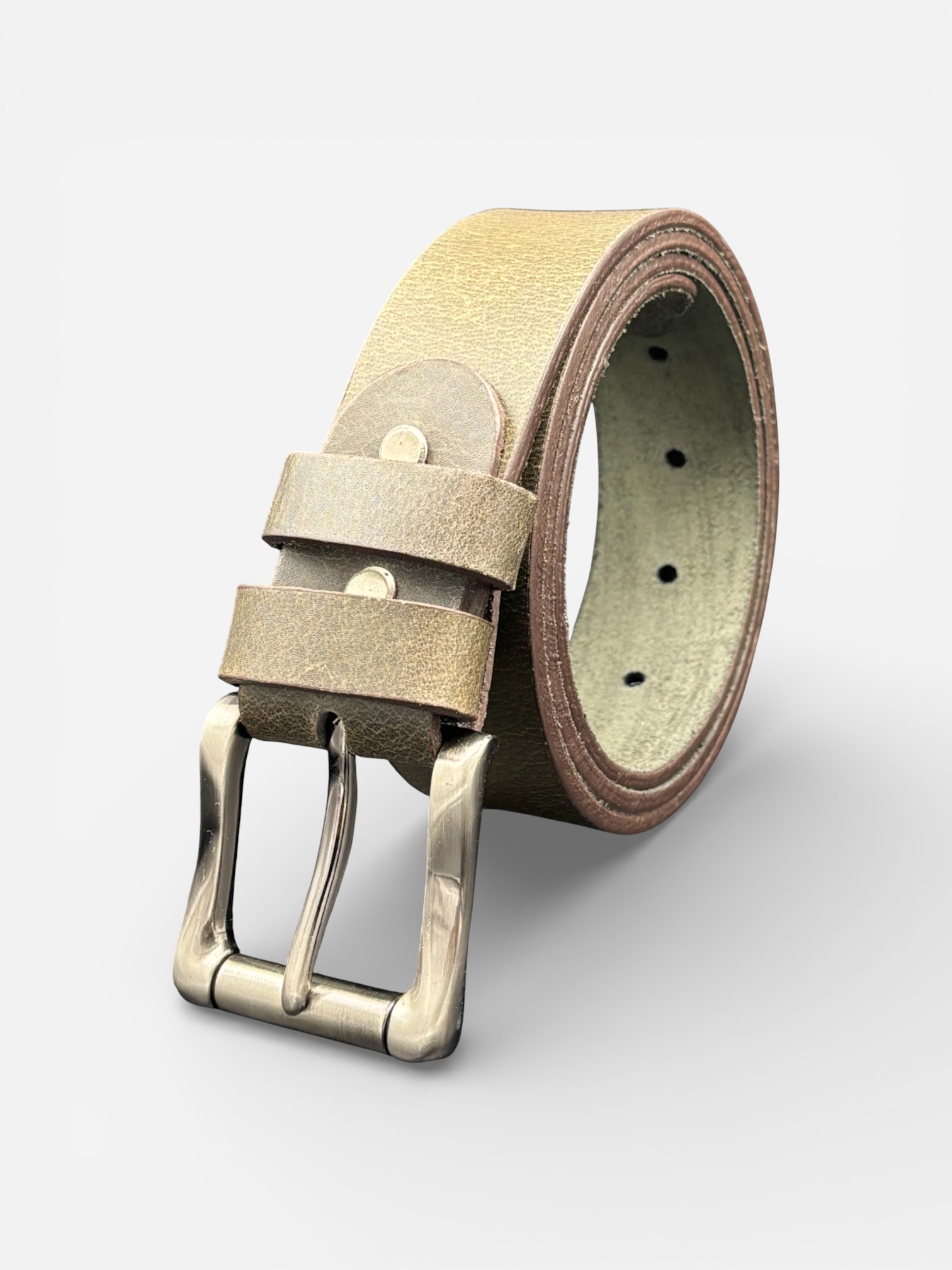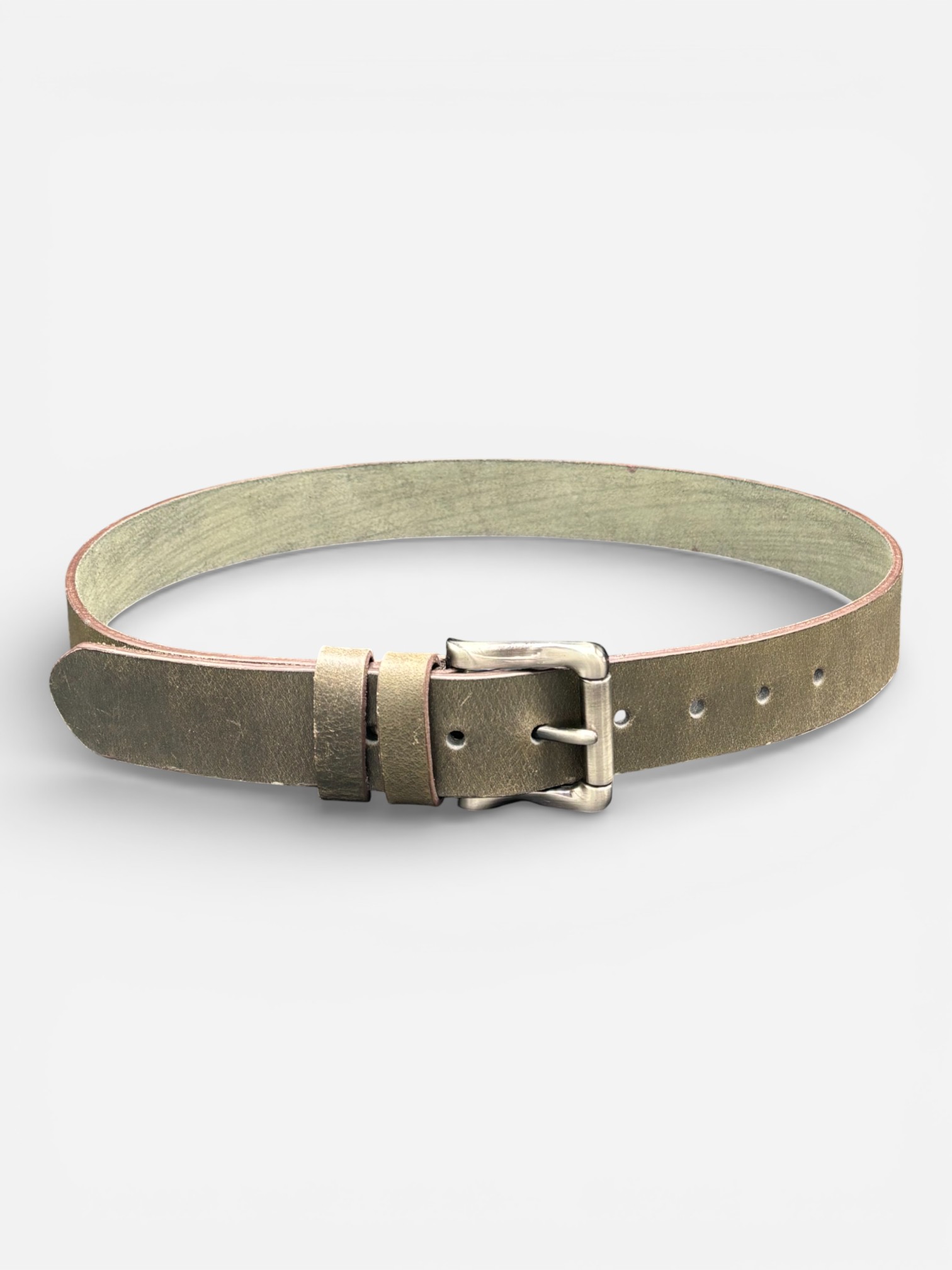 Rugged Olive Leather Belt, Steel Buckle