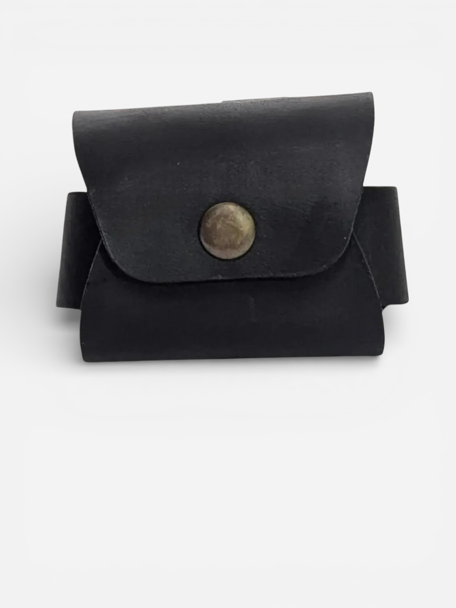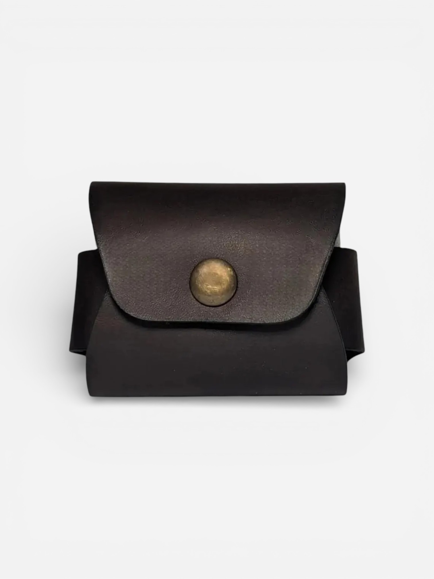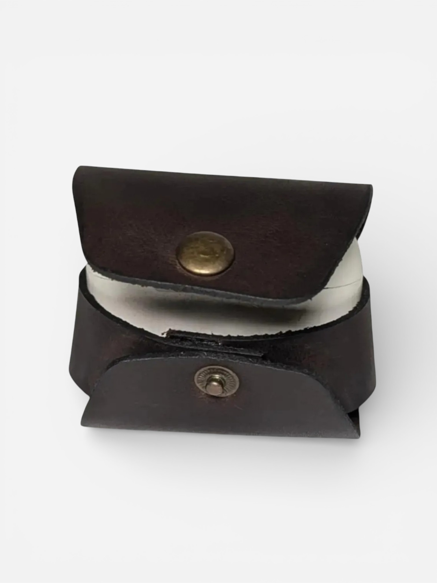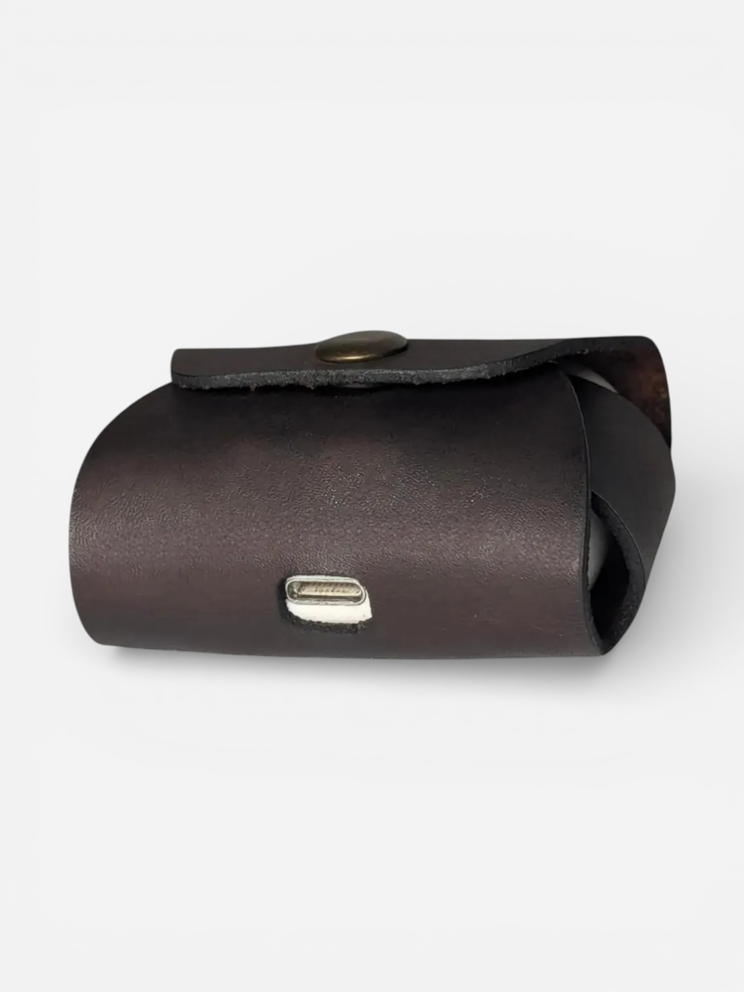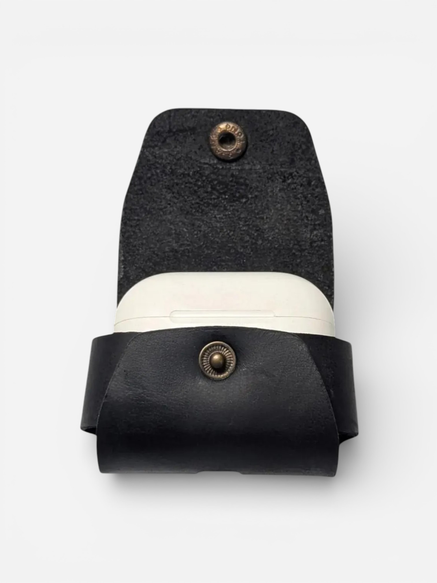 A case that blends function with elegance. Made from genuine cowhide leather, this earbud holder protects your AirPods and other wireless earbuds in a compact, stylish form. Its smooth texture and rich color make it a must-have for anyone who values simple, everyday luxury. Features 100% genuine cowhide leather with natural texture and durability Compatible with AirPods and most wireless earbuds Available in two colors: rich brown and sleek black Brass-tone snap closure keeps earbuds secure and easy to access Soft interior lining prevents scratches and scuffs Compact design fits easily in pockets, bags, or travel kits Lightweight yet sturdy for daily use Handcrafted by skilled artisans for lasting quality