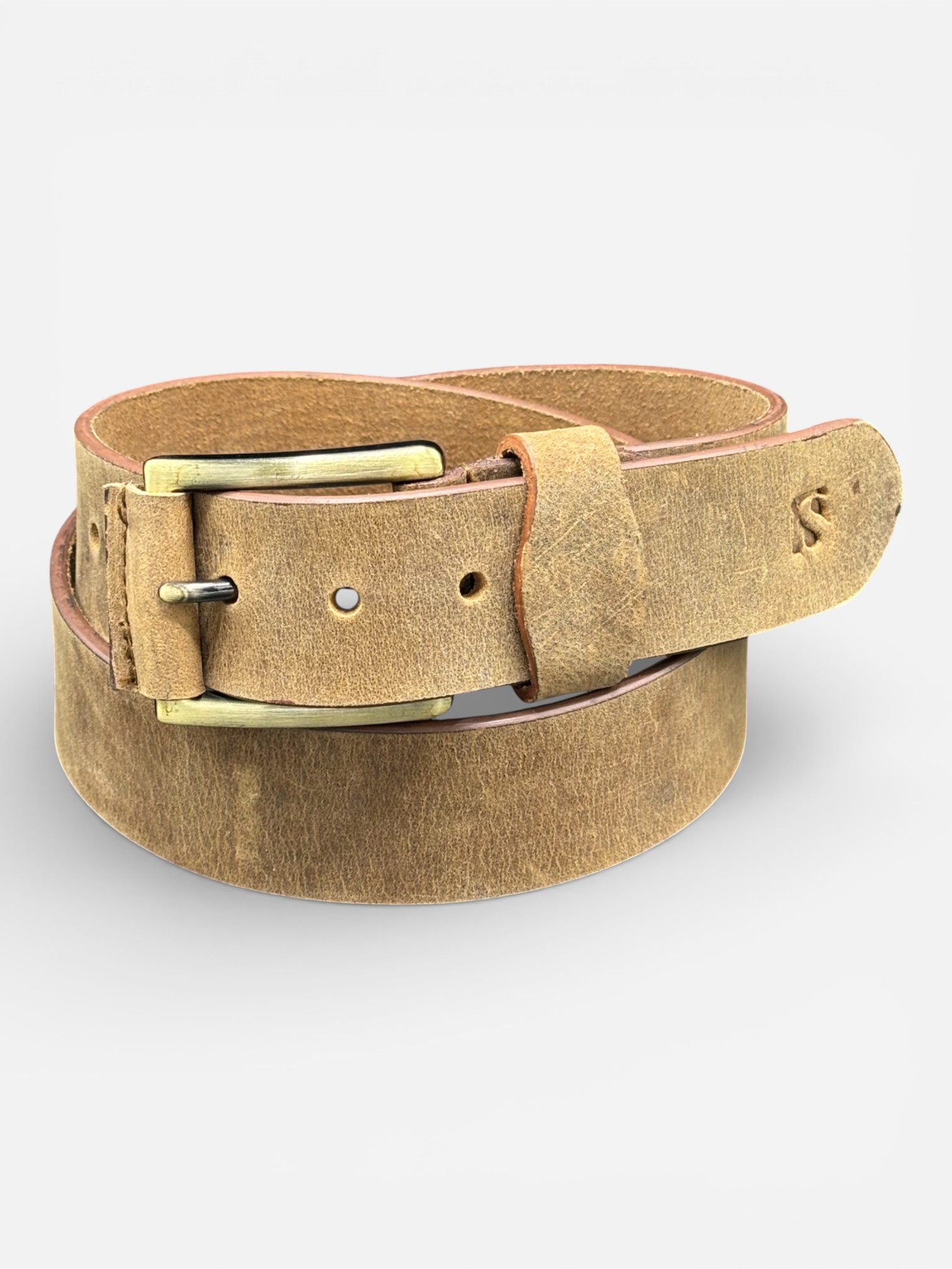 This brown patina brass leather belt is crafted from genuine cow leather and finished with a solid brass buckle. A versatile men’s accessory for casual and formal outfits.  Features Made from genuine cow leather with natural patina finish Strong solid brass buckle built to last Classic brown color for easy styling Comfortable fit for daily wear Works with both formal and casual outfits Premium quality men’s belt with timeless appeal