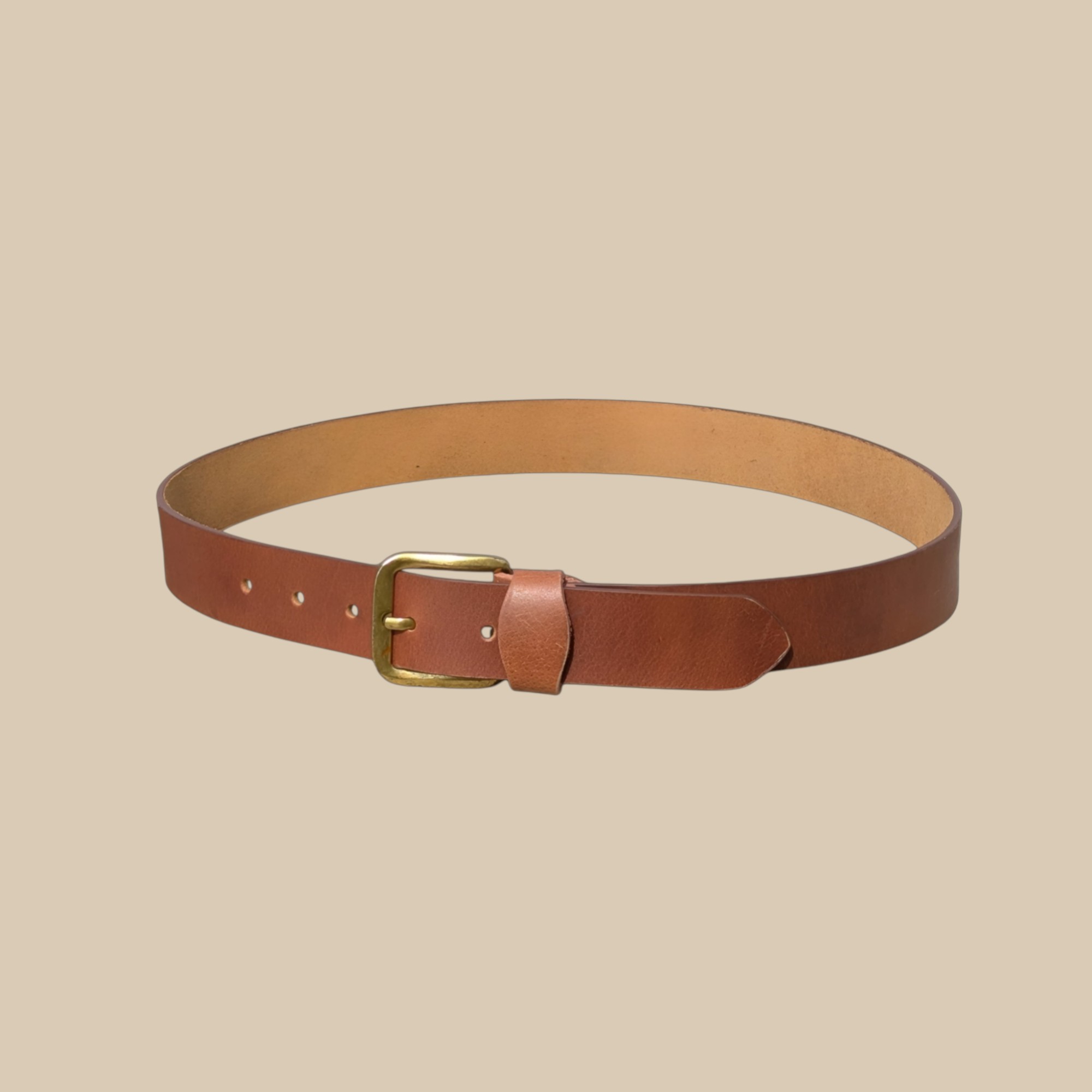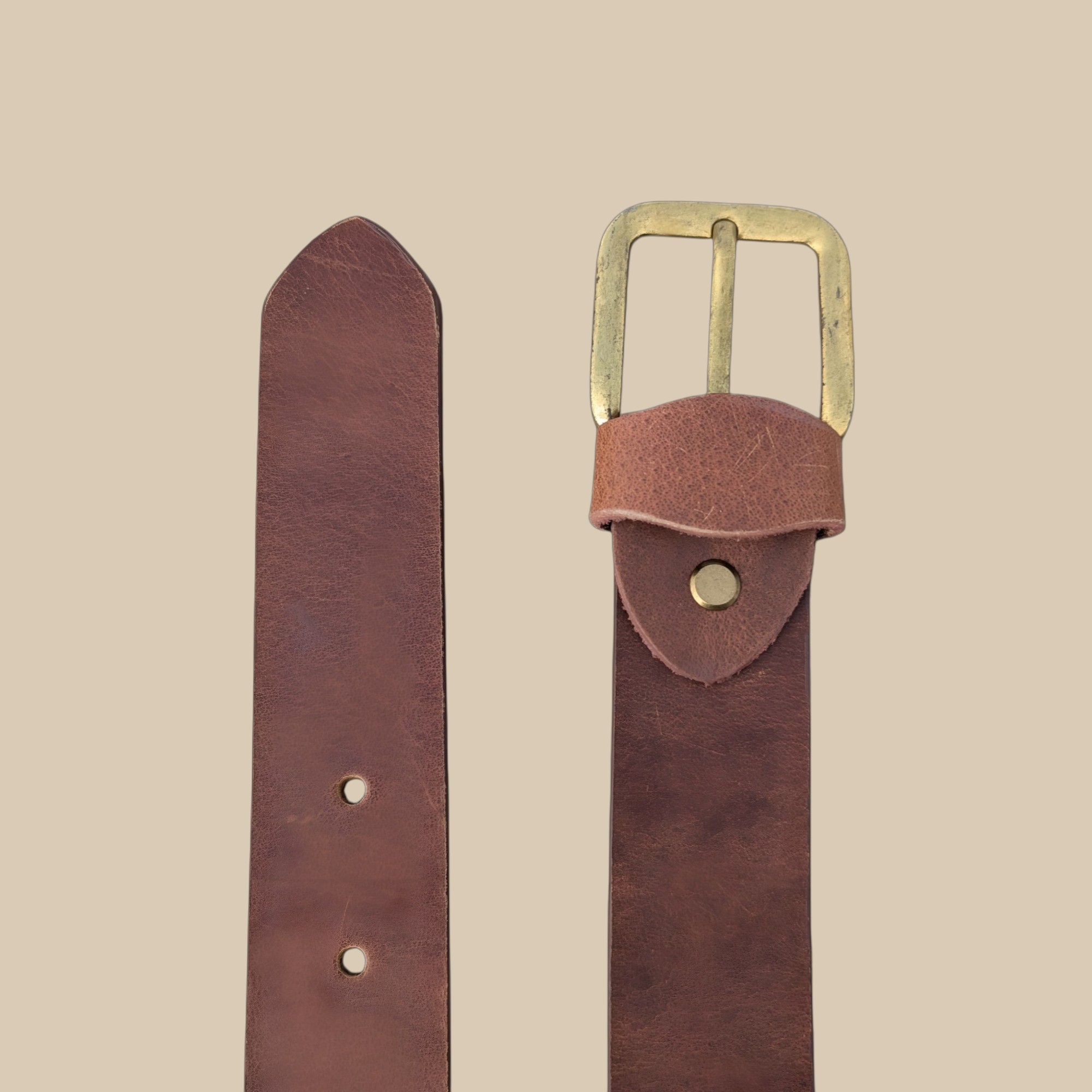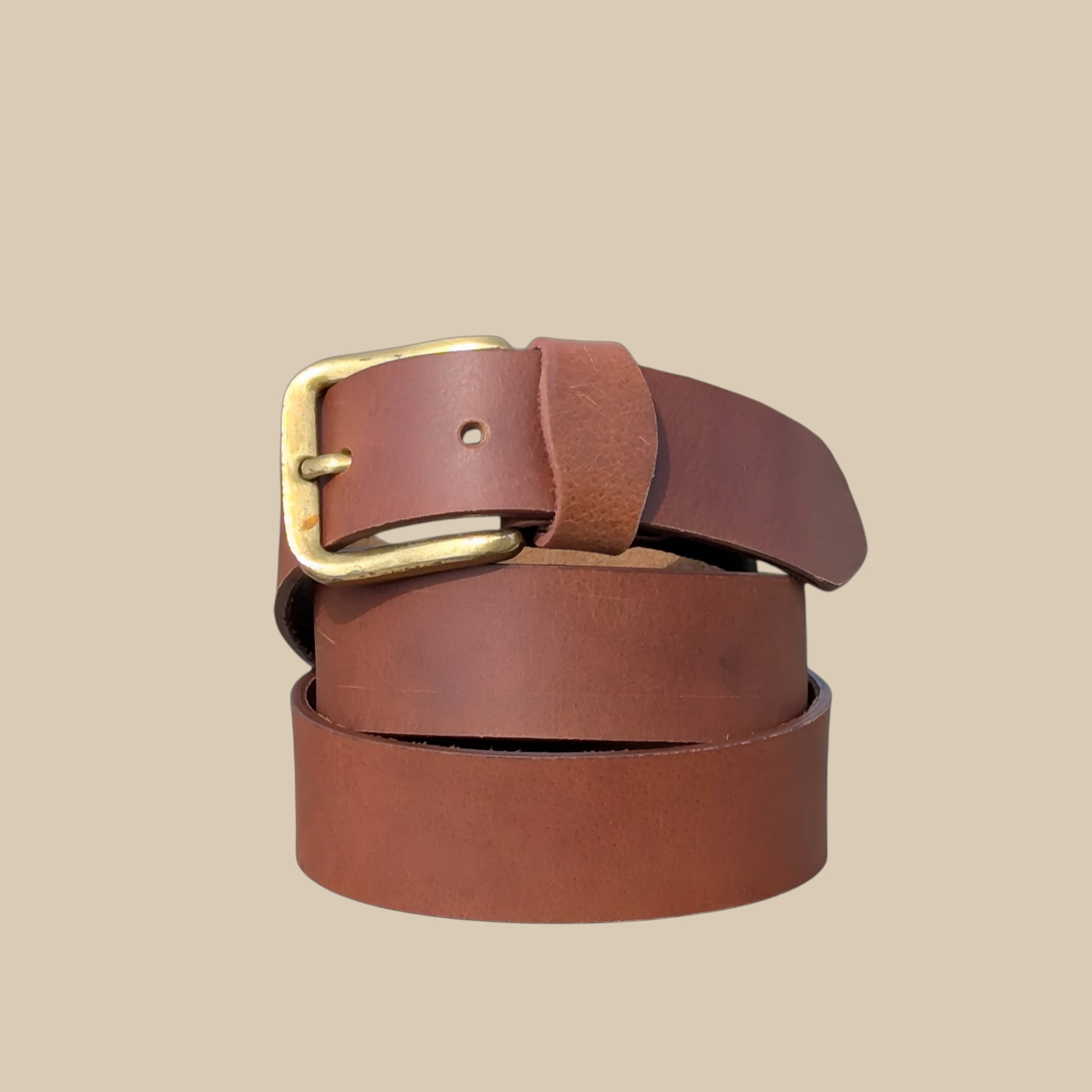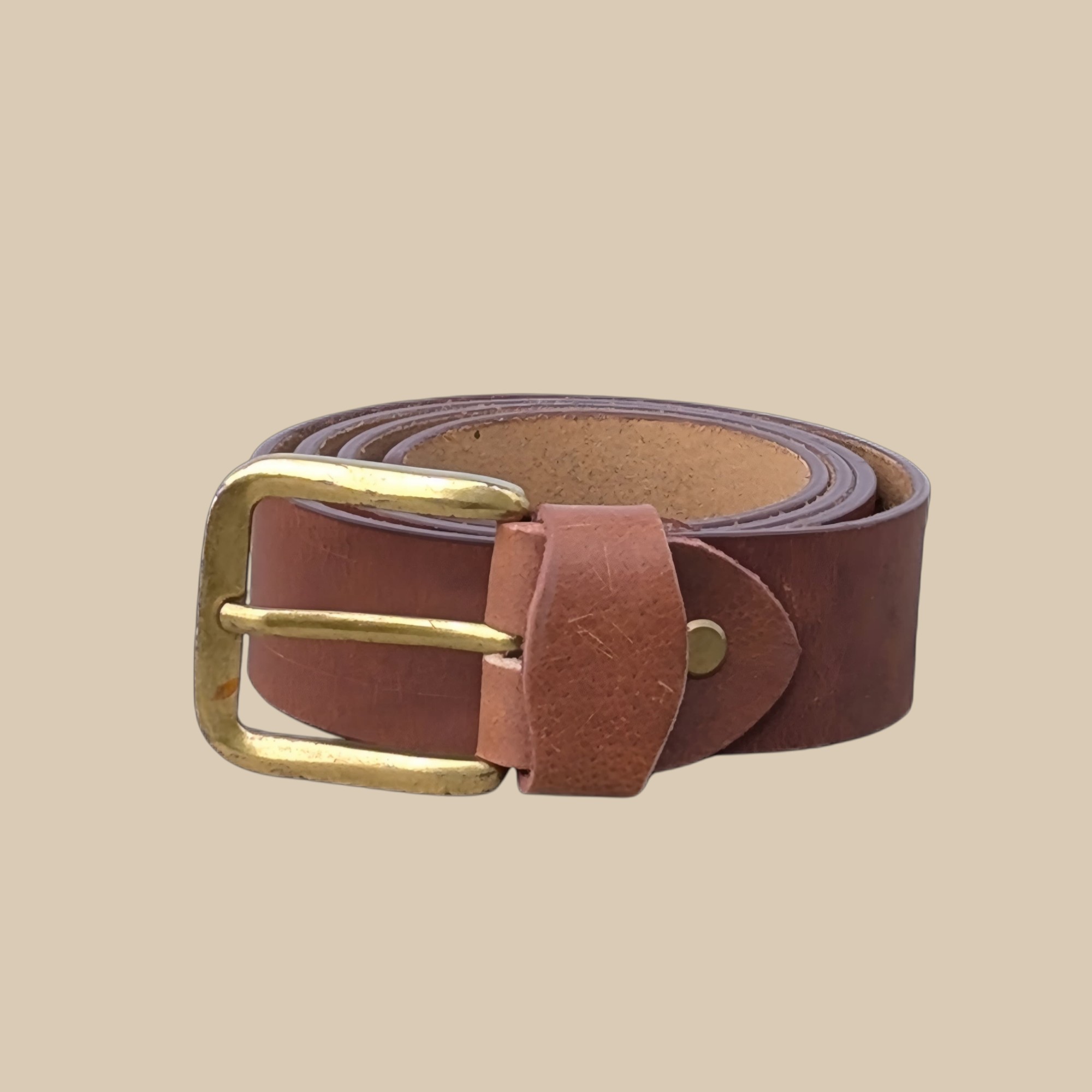 The Brown Brass Belt from Sable and Stone is made for men who want something real, simple, and strong. It is a brown leather belt with a brass buckle, crafted from genuine leather that feels solid in your hand and soft around your waist. The natural brown color gives it a timeless look, while the solid brass buckle adds a warm finish that never goes out of style.