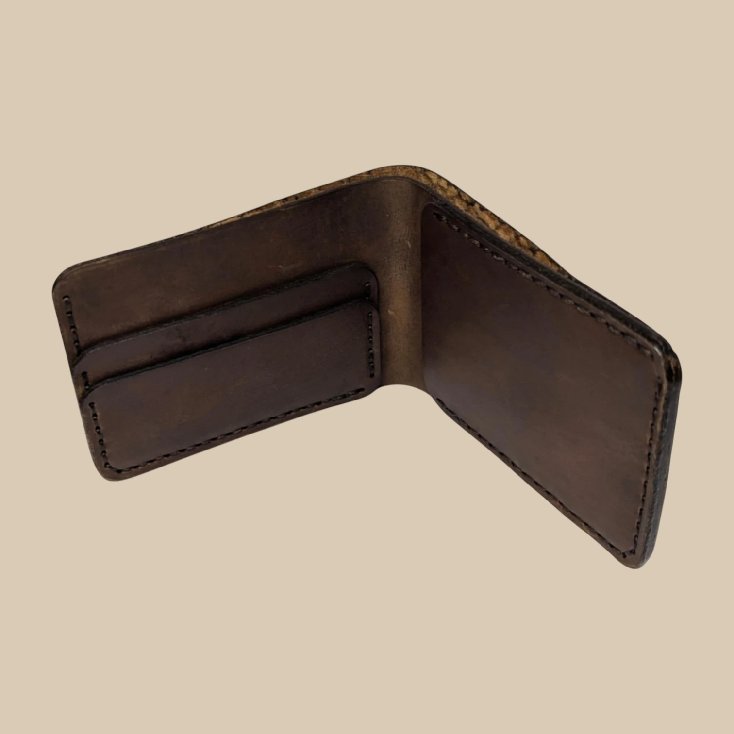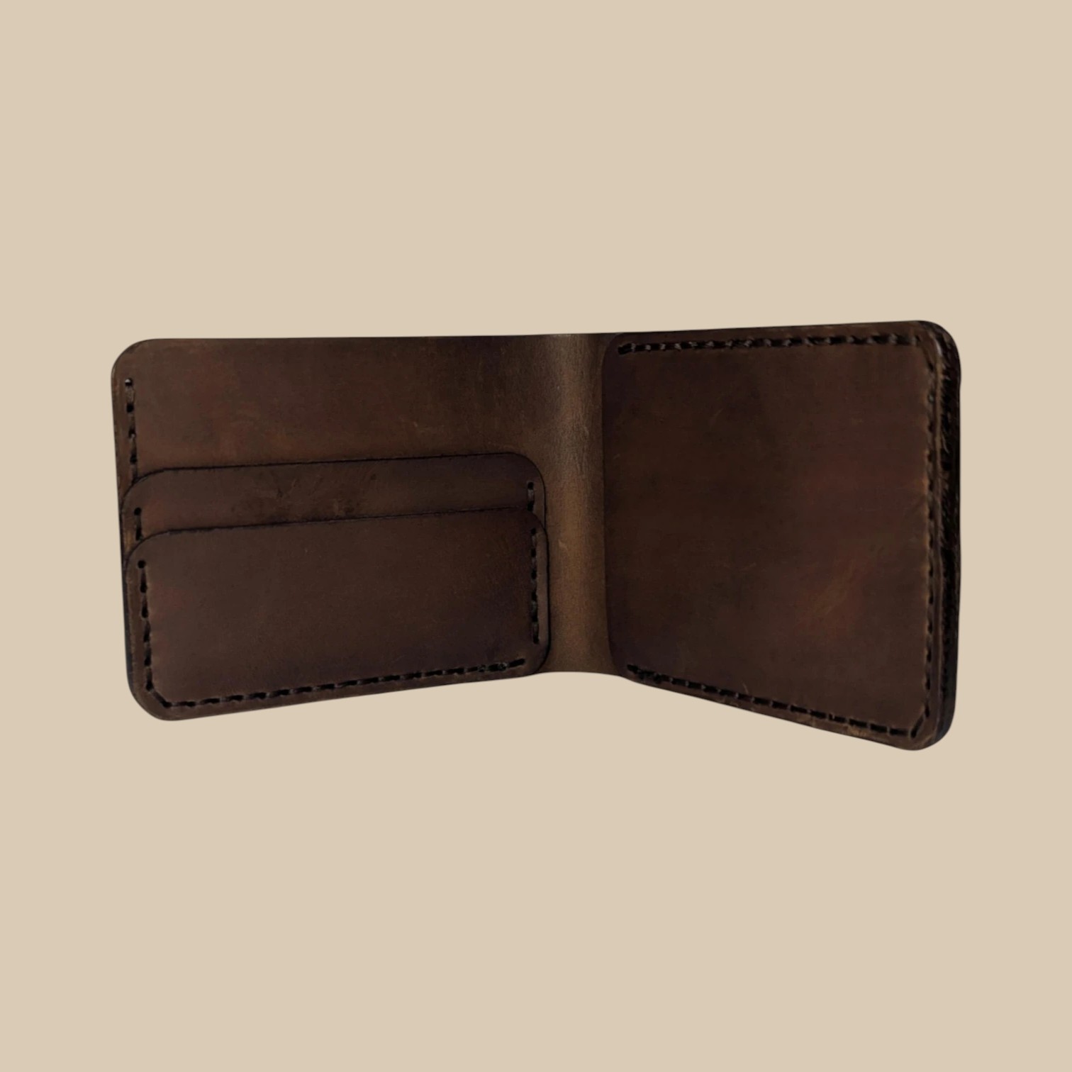It’s a slim bifold design with multiple card slots and a spacious bill compartment. Perfect for holding your daily essentials—cards, cash, and IDs—without adding bulk.