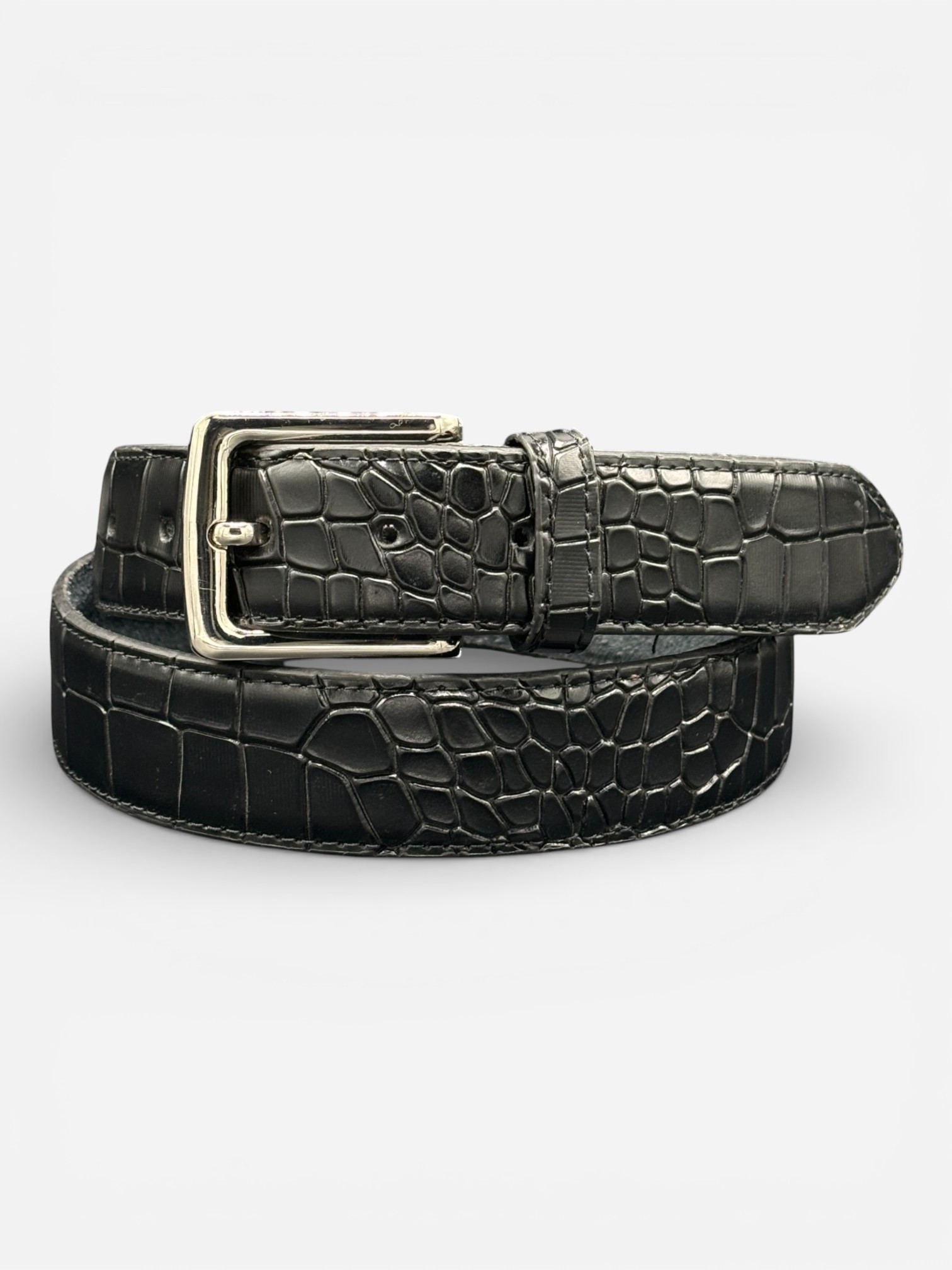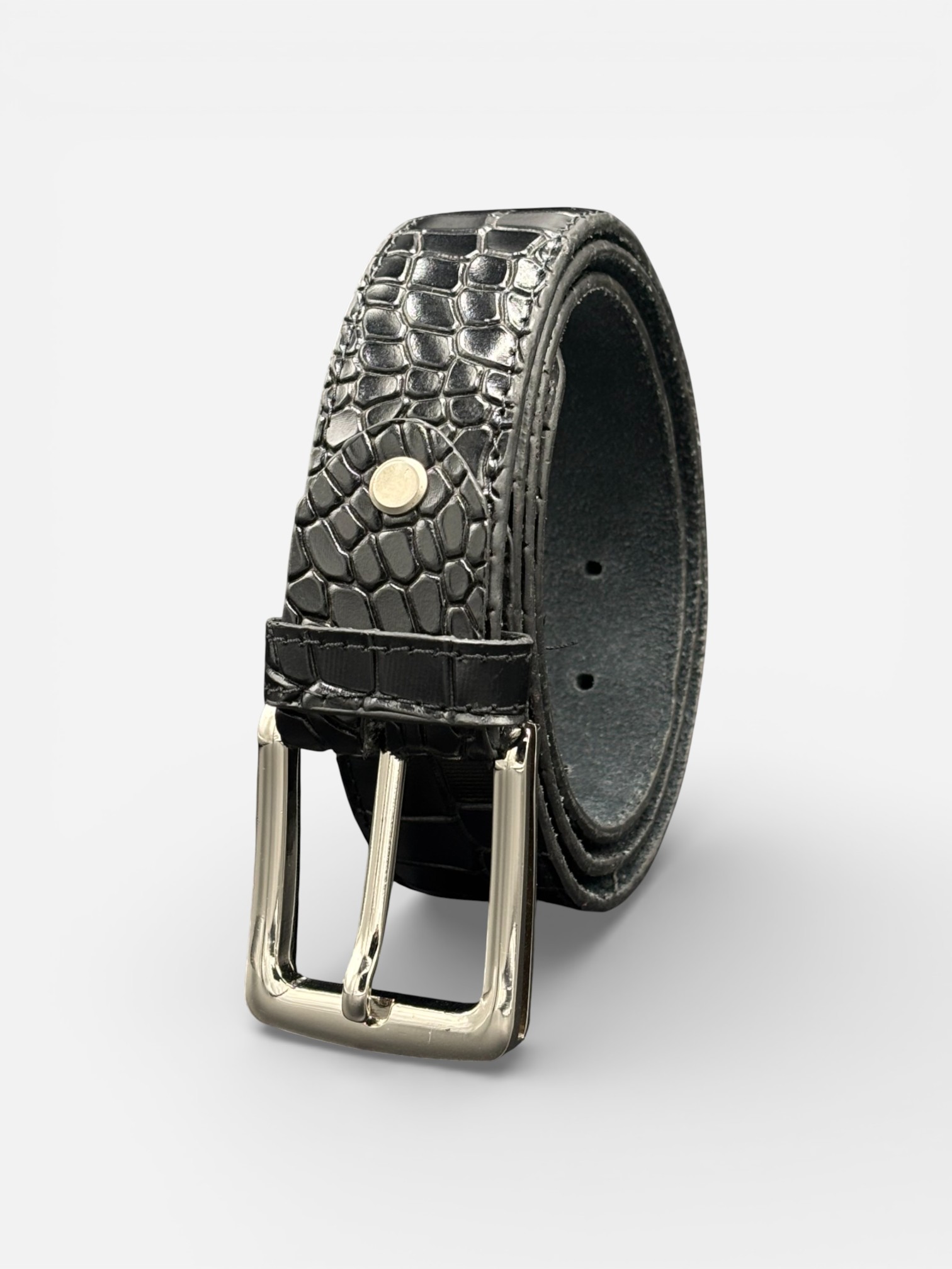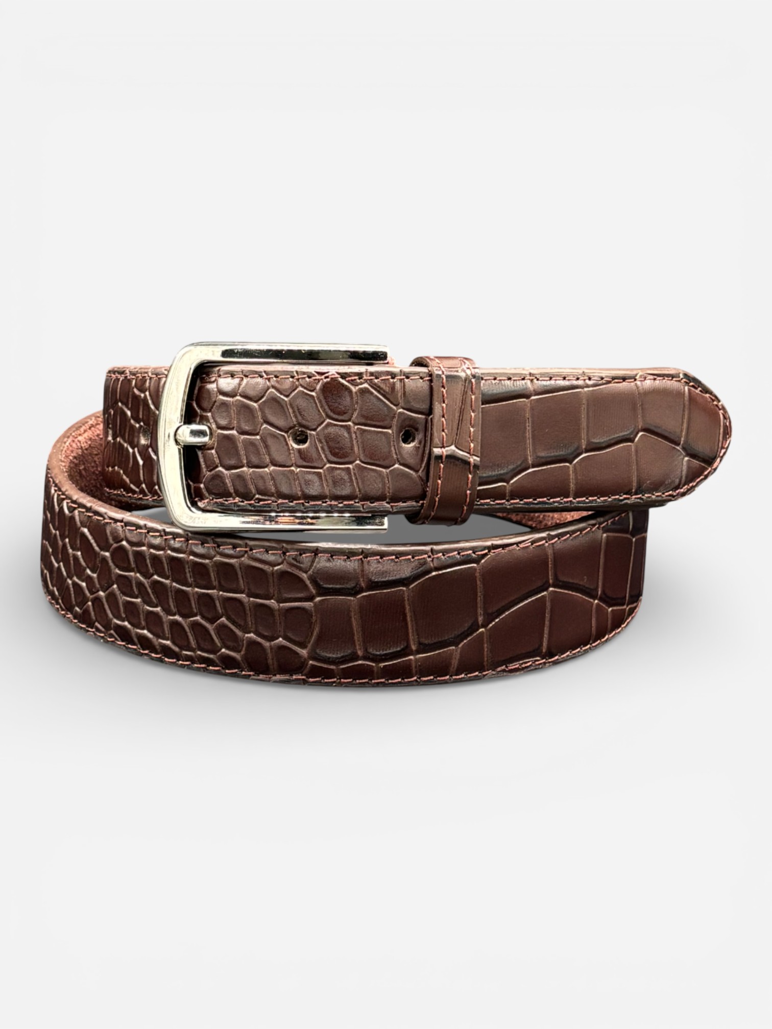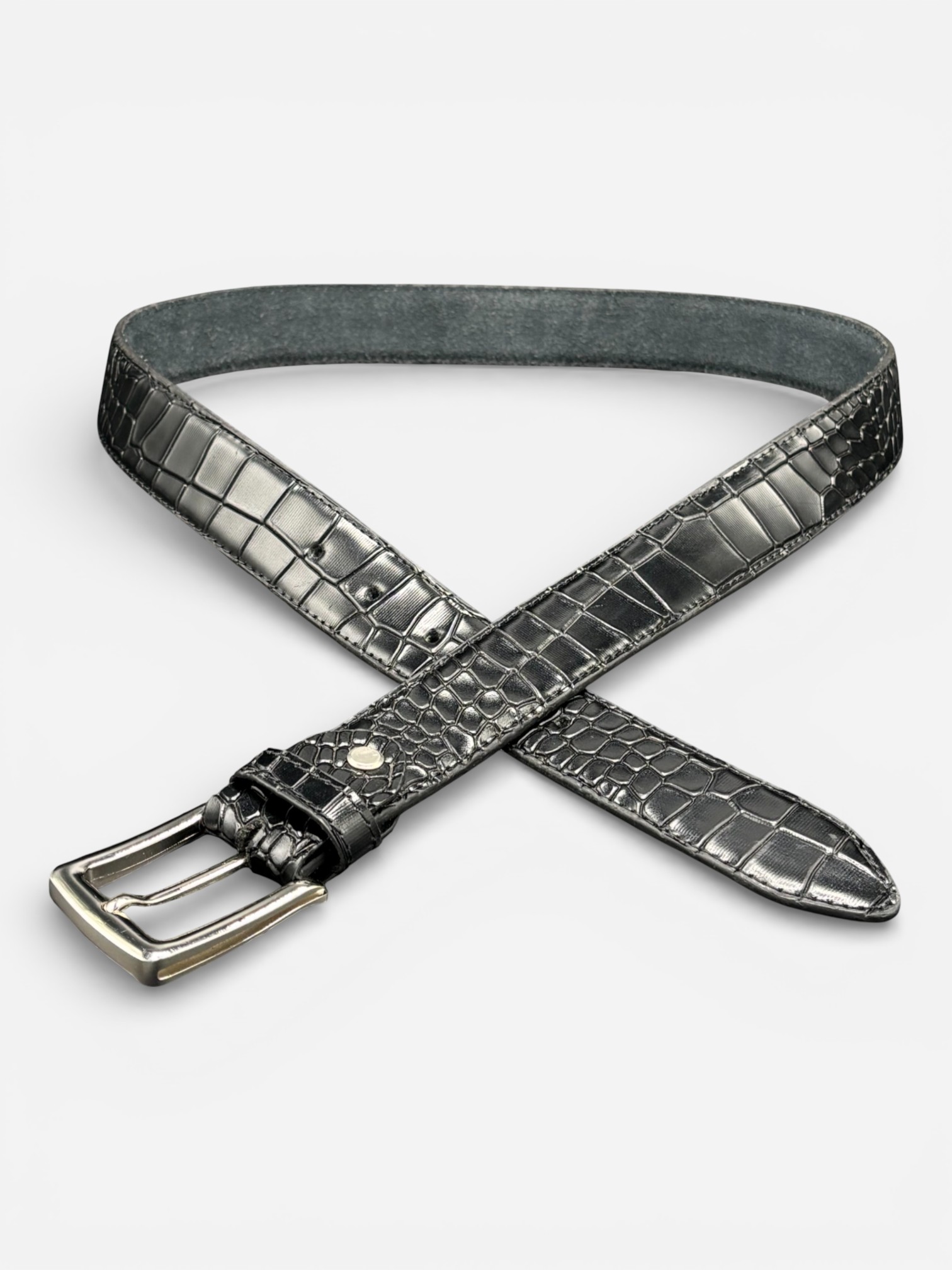 Step up your style with this men’s crocodile pattern leather belt, made from genuine embossed cow leather, available in rich brown and black colors, with a polished silver buckle. Designed for comfort and durability, it’s the perfect luxury accessory for both formal wear and everyday outfits. Features Genuine cow leather with crocodile pattern Classic black finish with premium silver buckle Handcrafted with care for lasting durability Available in multiple men’s sizes Stylish design for formal and casual wear Premium luxury gift option