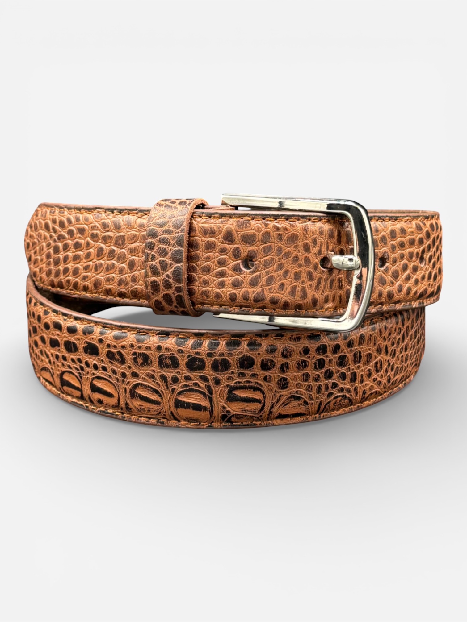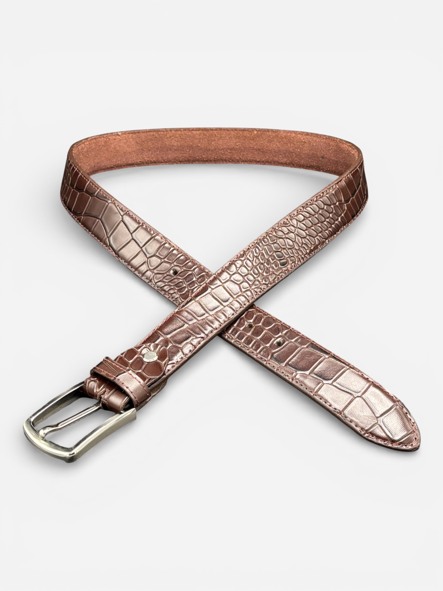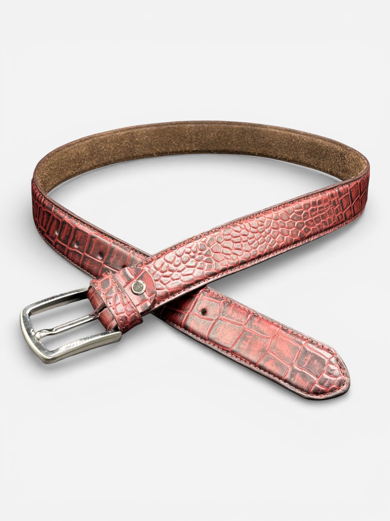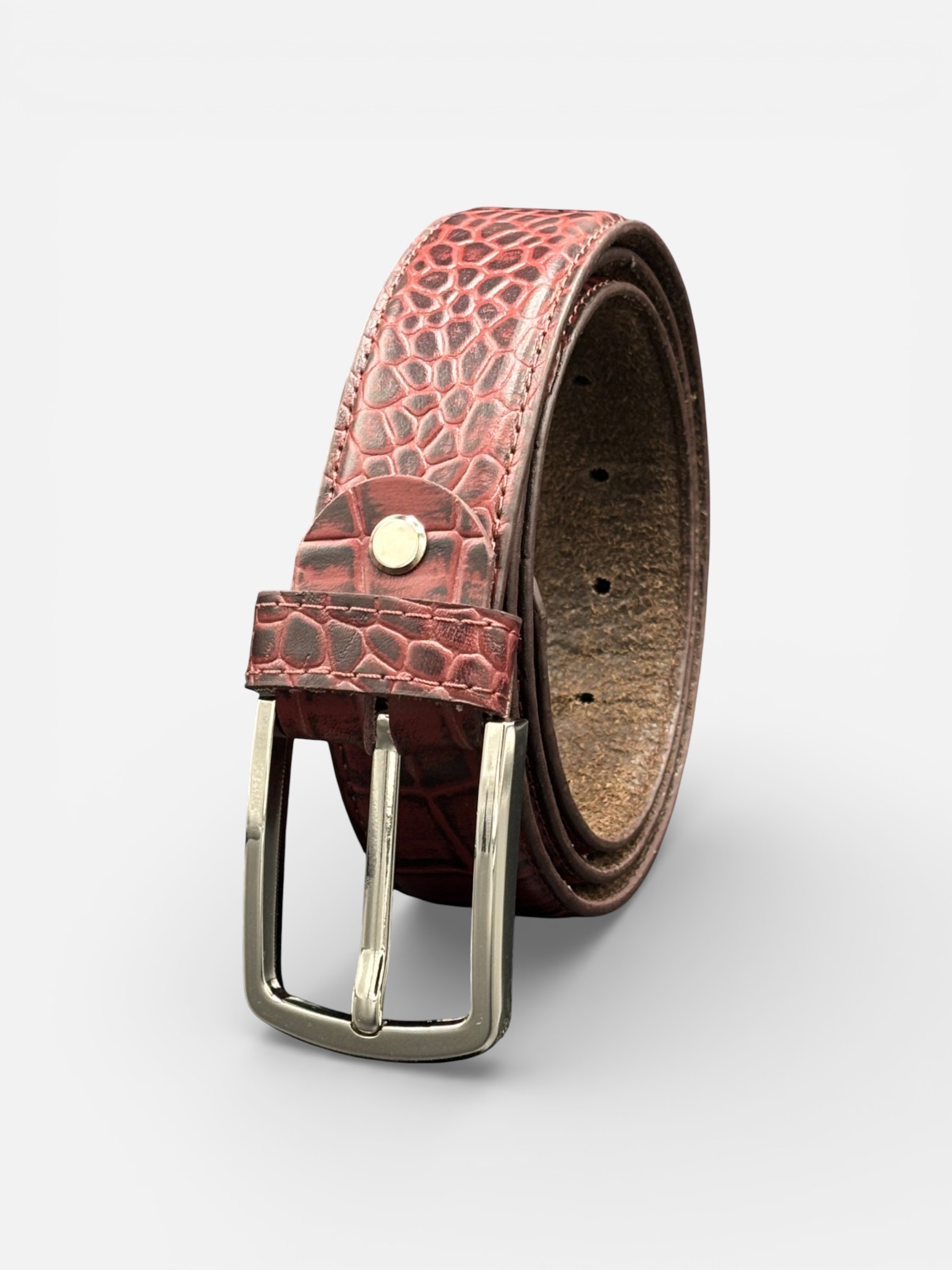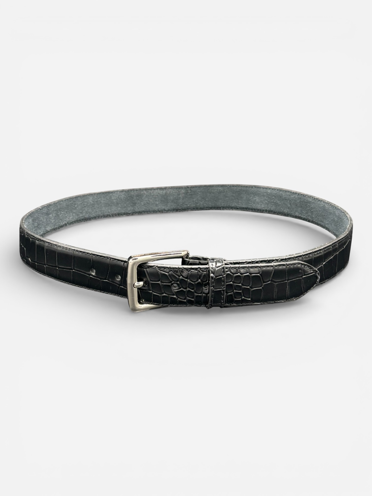 Step up your style with this men’s crocodile pattern leather belt, made from genuine embossed cow leather, available in rich brown and black colors, with a polished silver buckle. Designed for comfort and durability, it’s the perfect luxury accessory for both formal wear and everyday outfits. Features Genuine cow leather with crocodile pattern Classic black finish with premium silver buckle Handcrafted with care for lasting durability Available in multiple men’s sizes Stylish design for formal and casual wear Premium luxury gift option