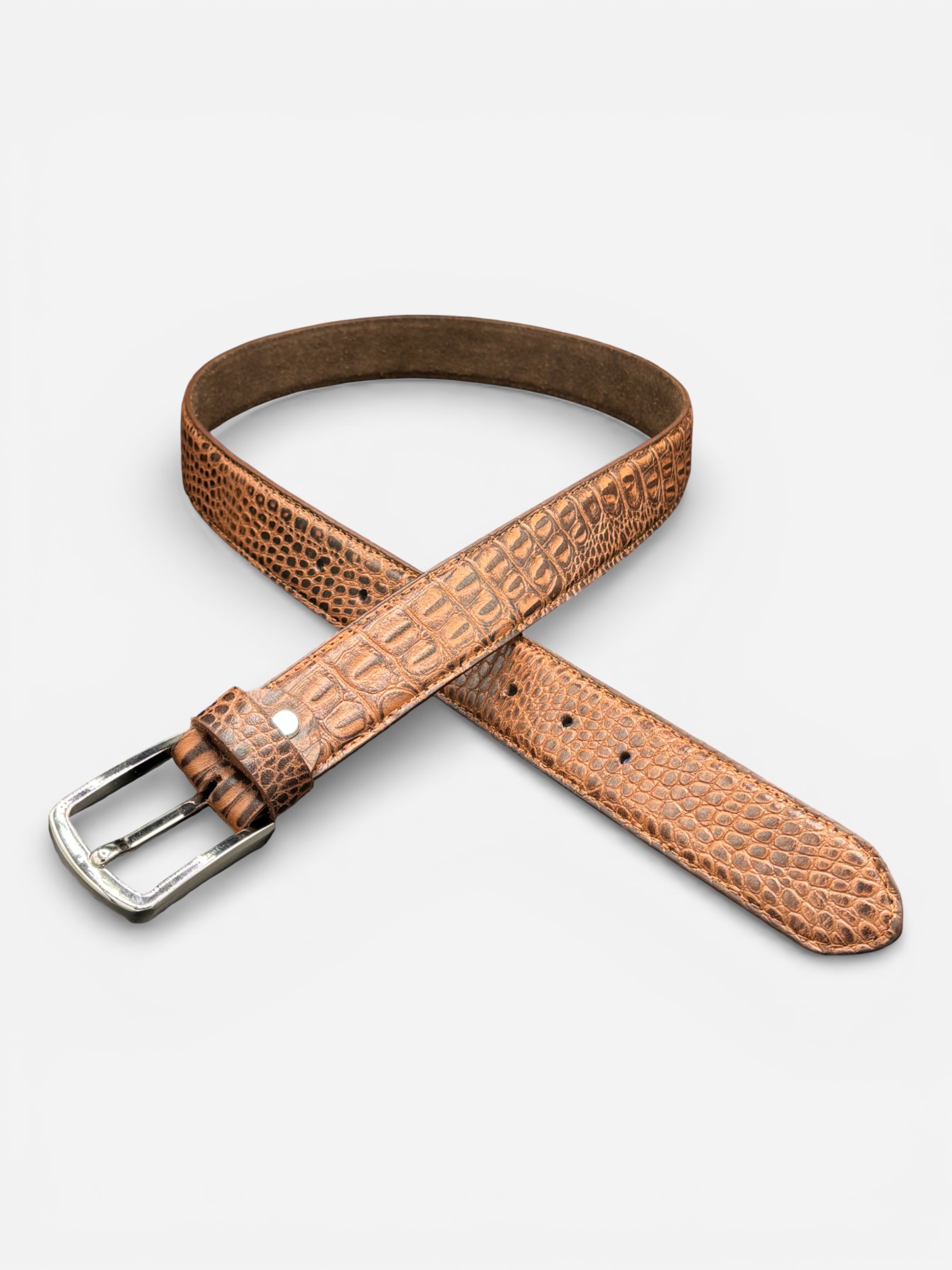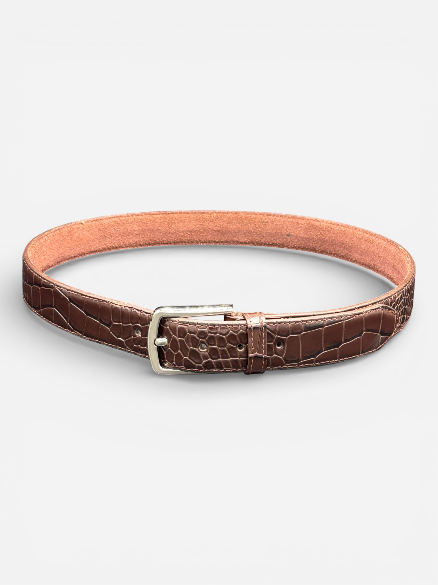 -49%Step up your style with this men’s crocodile pattern leather belt, made from genuine embossed cow leather, available in rich brown and black colors, with a polished silver buckle. Designed for comfort and durabilit...