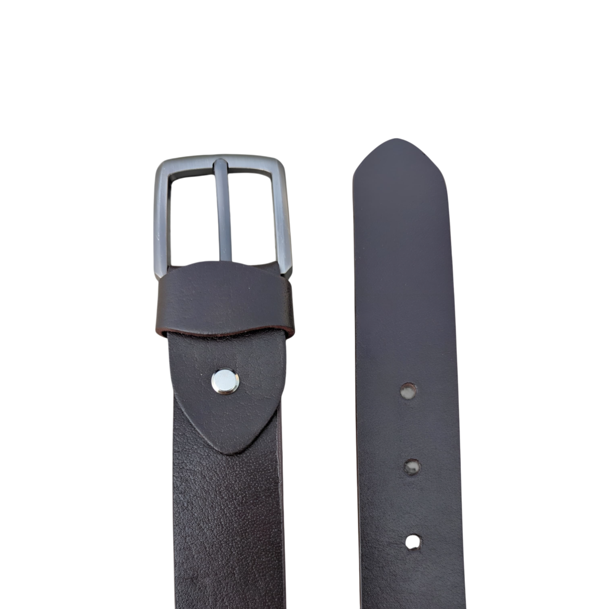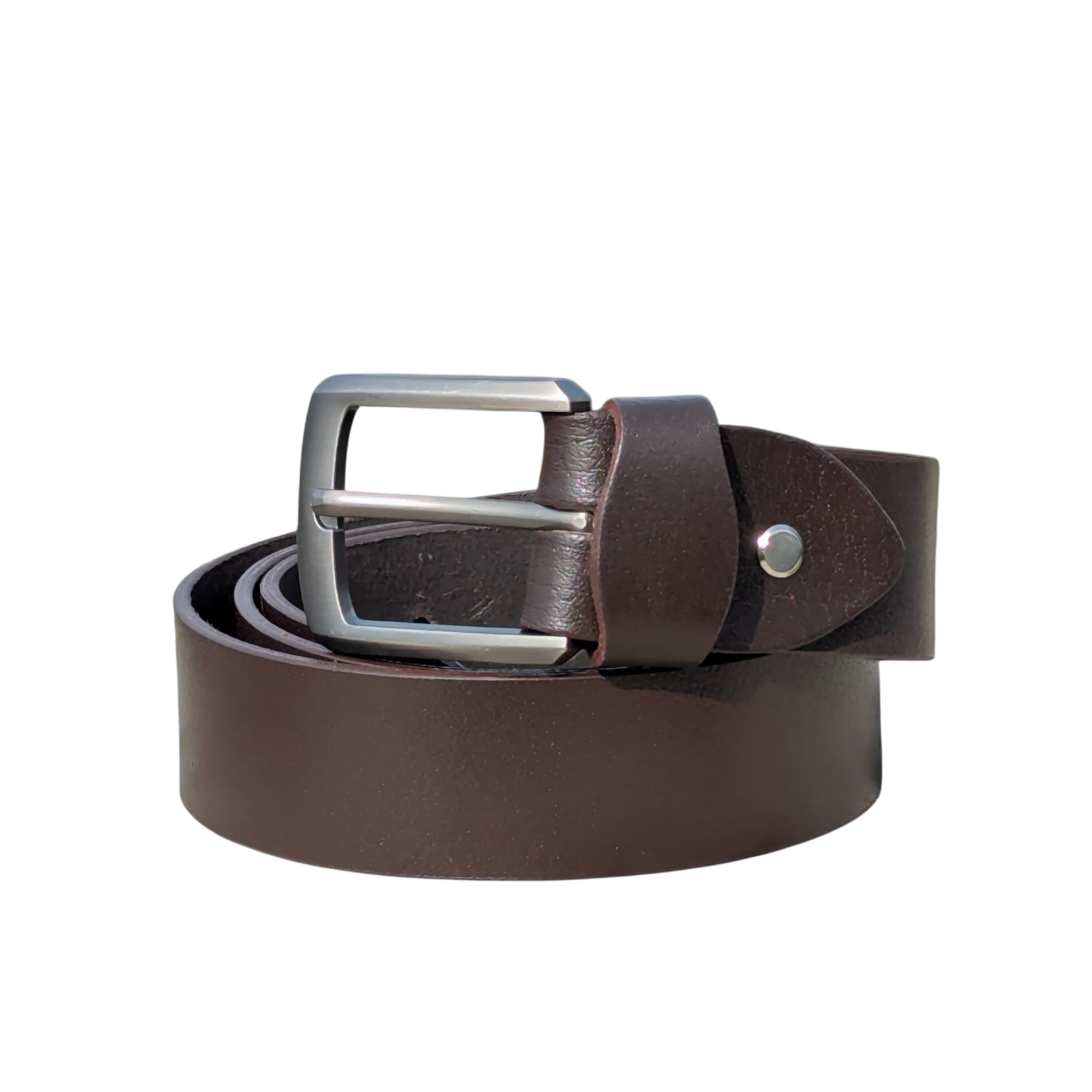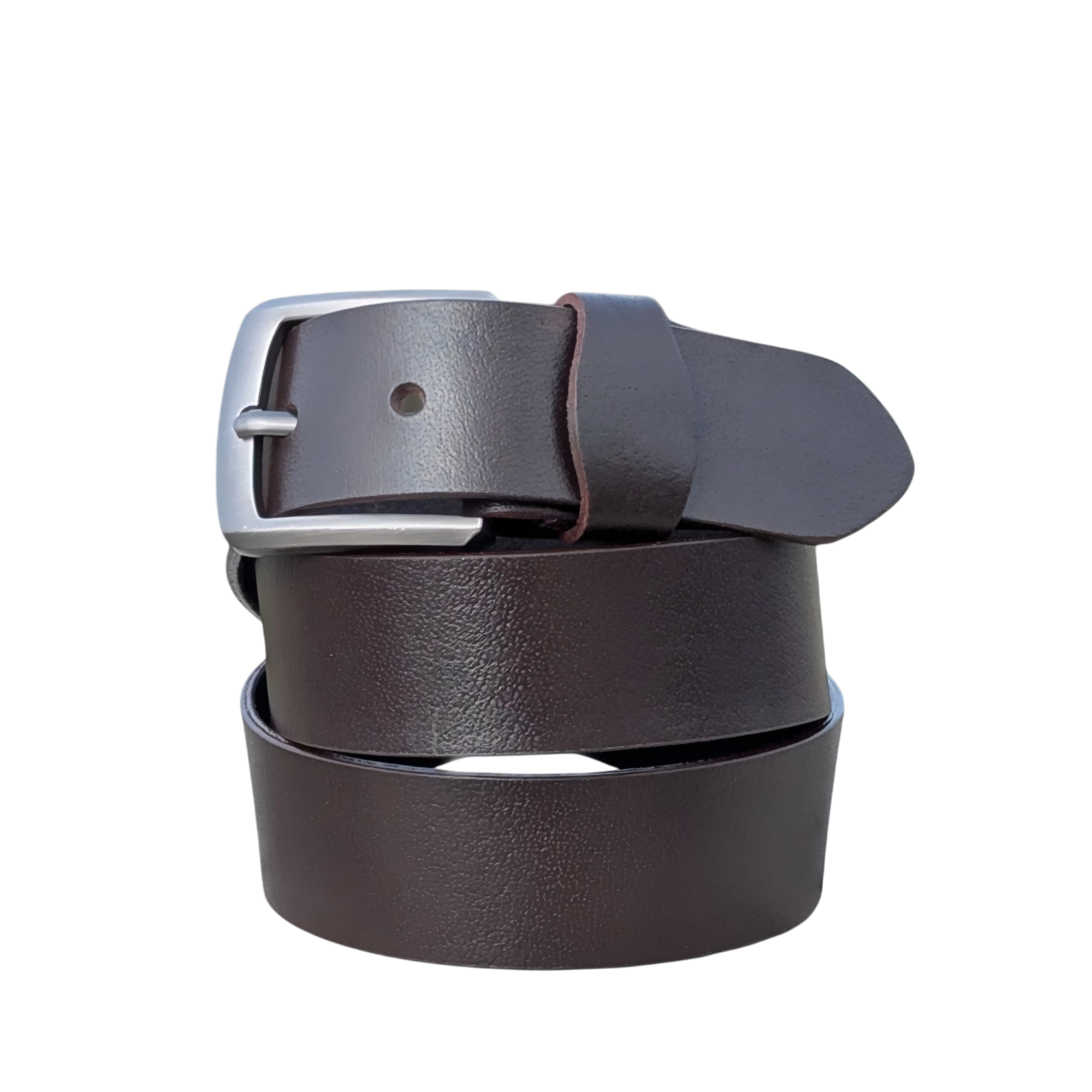 Refine your look with our sleek and versatile dark brown leather belt. Crafted from high-quality, smooth genuine leather, this belt offers both timeless style and exceptional durability. The polished silver-toned buckle beautifully complements the rich dark brown hue, making it an essential accessory that effortlessly transitions from casual wear to more formal occasions.