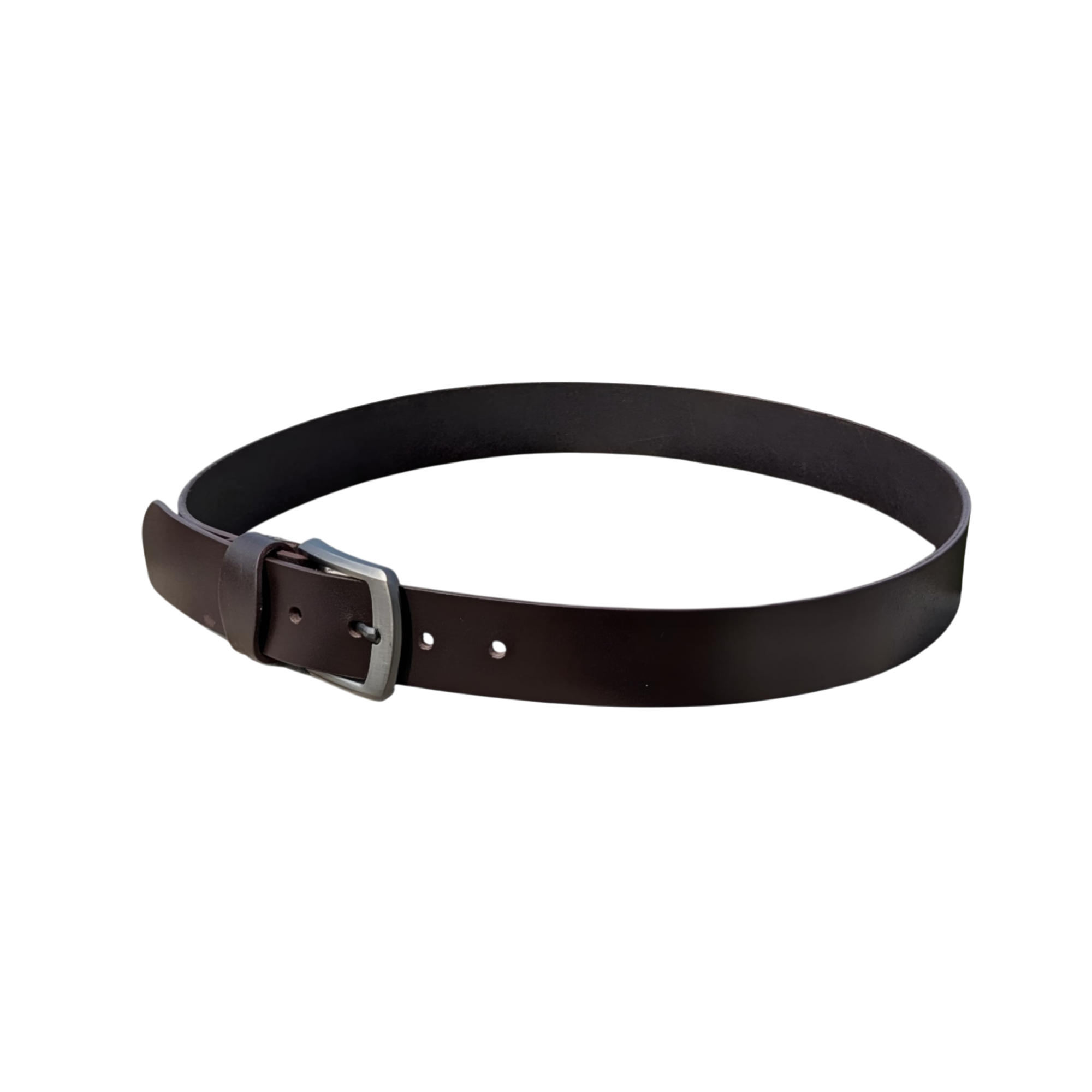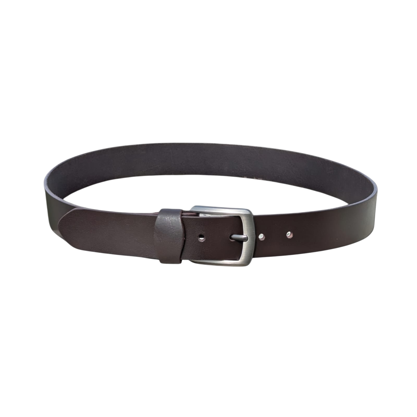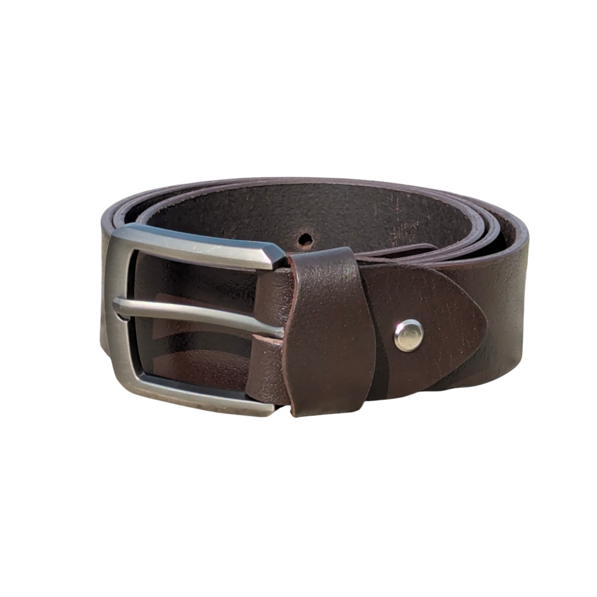 Refine your look with our sleek and versatile dark brown leather belt. Crafted from high-quality, smooth genuine leather, this belt offers both timeless style and exceptional durability. The polished silver-toned buckle beautifully complements the rich dark brown hue, making it an essential accessory that effortlessly transitions from casual wear to more formal occasions.
