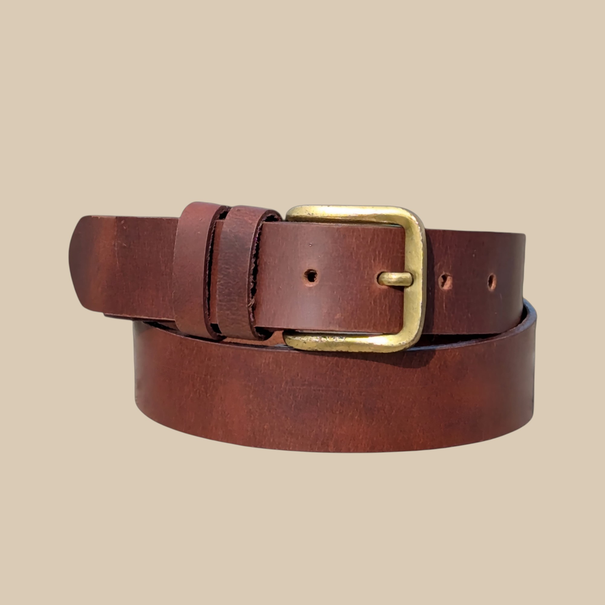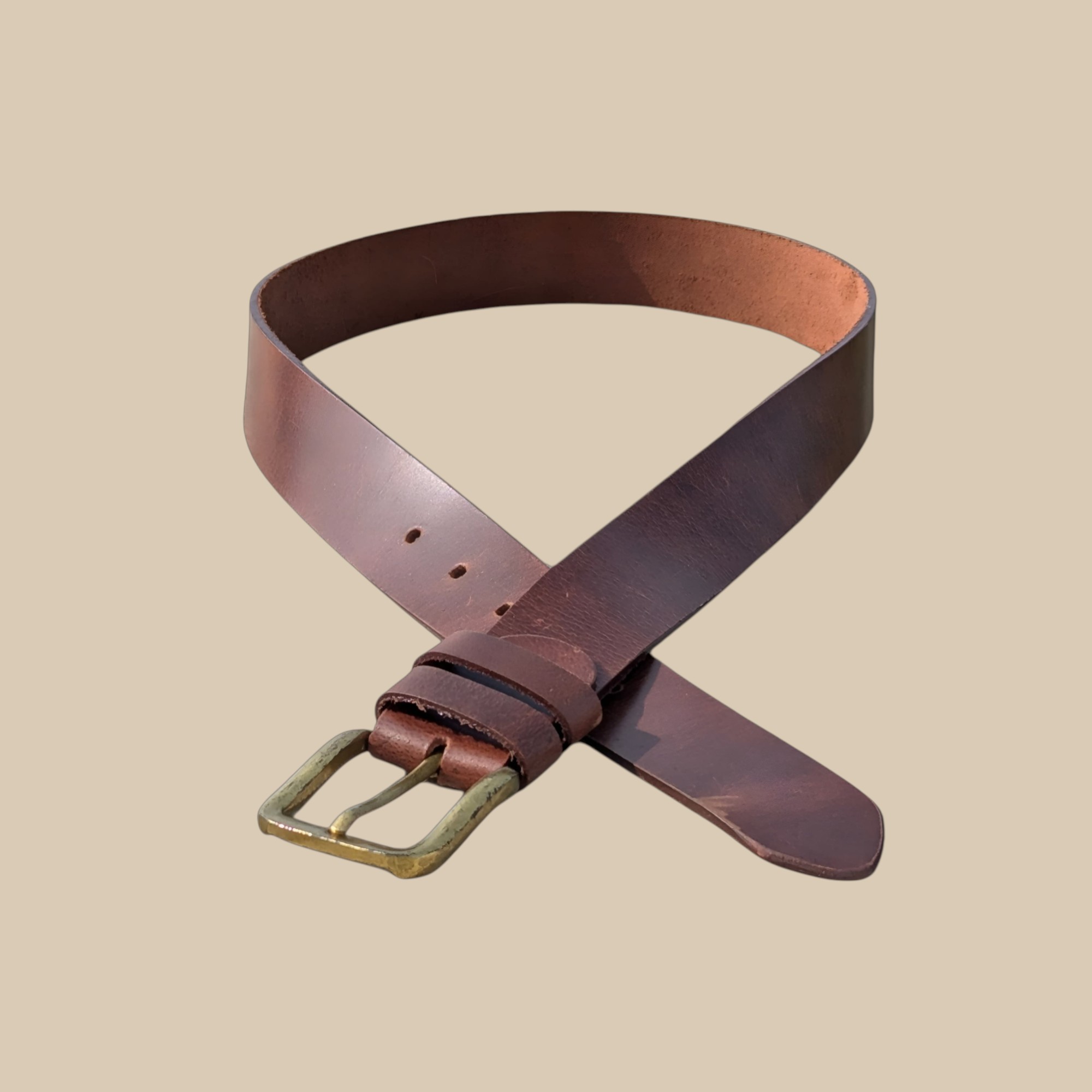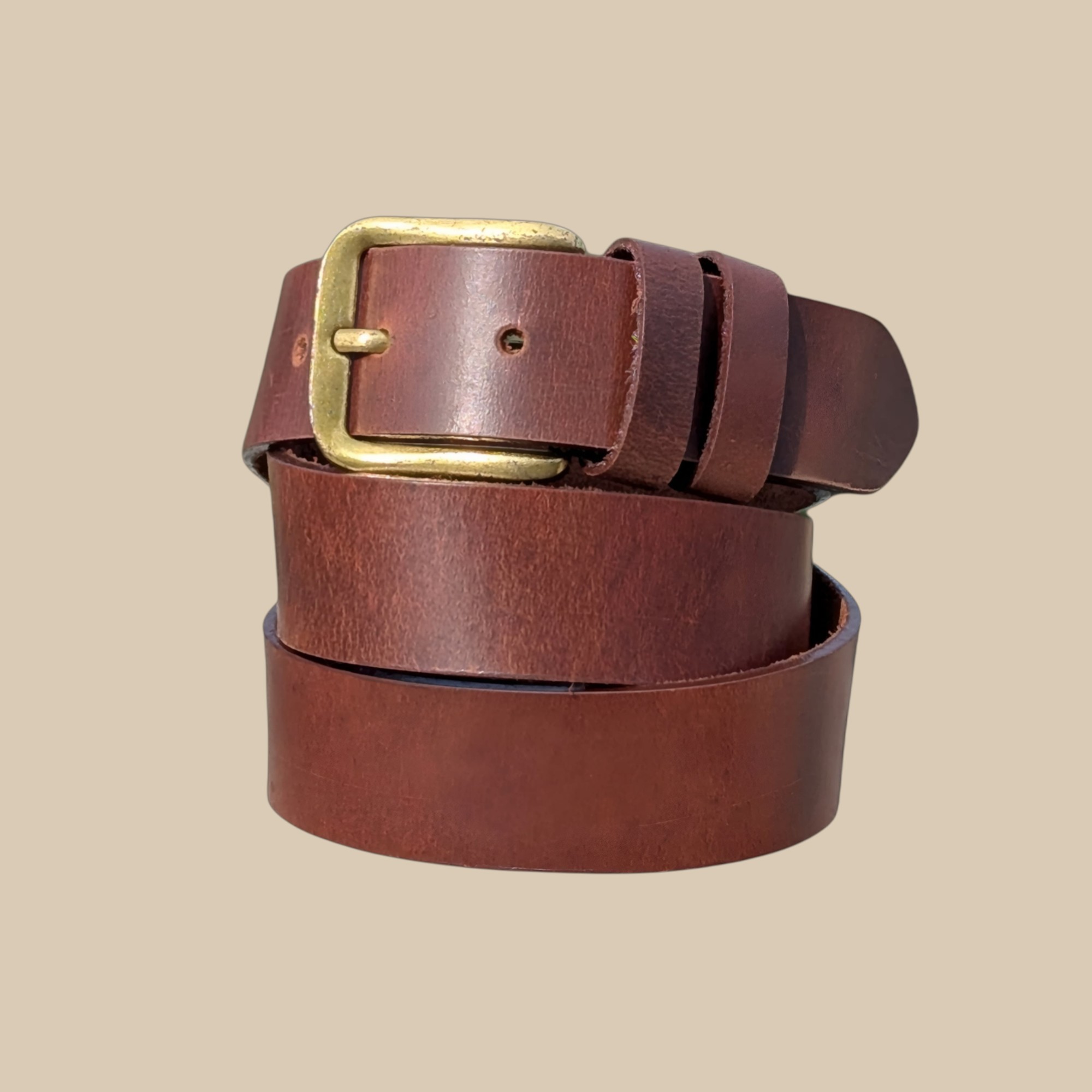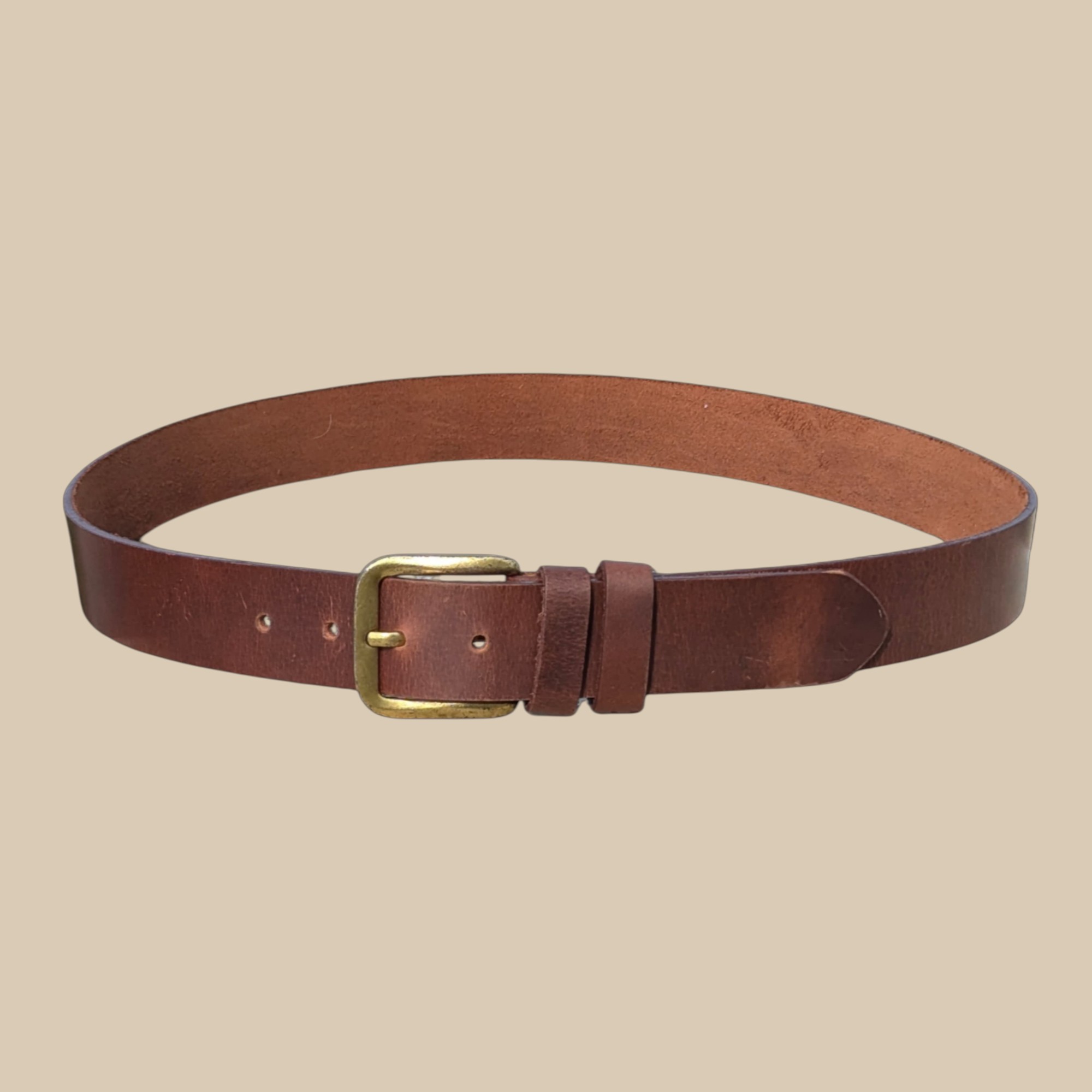 This full-grain leather belt is handcrafted from premium cowhide leather and finished with a solid brass buckle. Built to last, it combines strength, comfort, and timeless style, making it perfect for jeans, the office, or formal wear.