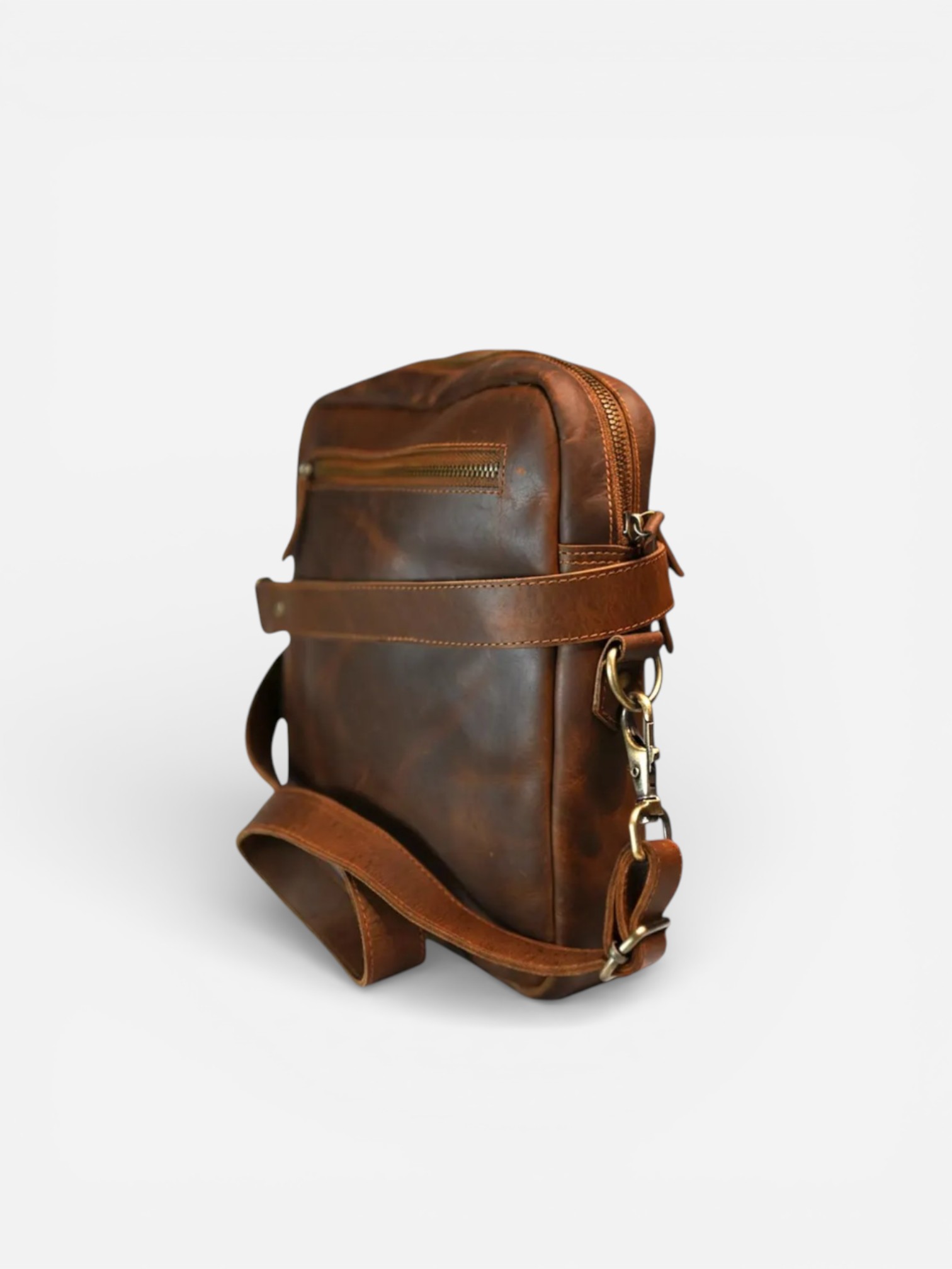 Embrace vintage style with this compact leather messenger bag. Made from genuine cowhide, its multiple pockets and rugged design are perfect for organizing your daily essentials. Product Features Distressed Cowhide Leather: Crafted from 100% genuine cowhide with a beautiful, rugged texture that gets better with age. Compact & Functional Design: A sleek, rectangular shape with multiple zippered and flap pockets for easy organization. Adjustable Crossbody Strap: Features a long, adjustable strap with a comfortable shoulder pad for carrying across the body or over the shoulder. Secure Storage: Equipped with high-quality zippers and a front flap-over pocket to keep your essentials safe. Vintage Brass Hardware: Features classic brass-colored hardware that complements the bag’s rustic, timeless appeal.