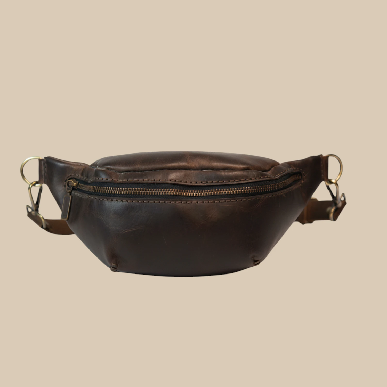 Keep your essentials close with this classic leather fanny pack. Crafted from genuine cowhide, its compact size and hands-free design are perfect for travel, festivals, or a day out.