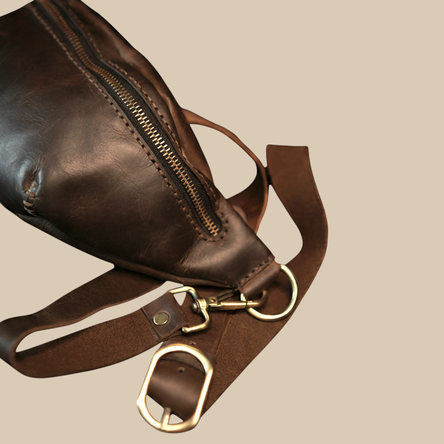 A: Yes, the leather strap is fully adjustable, allowing you to find the perfect fit to wear it on your waist or across your body.