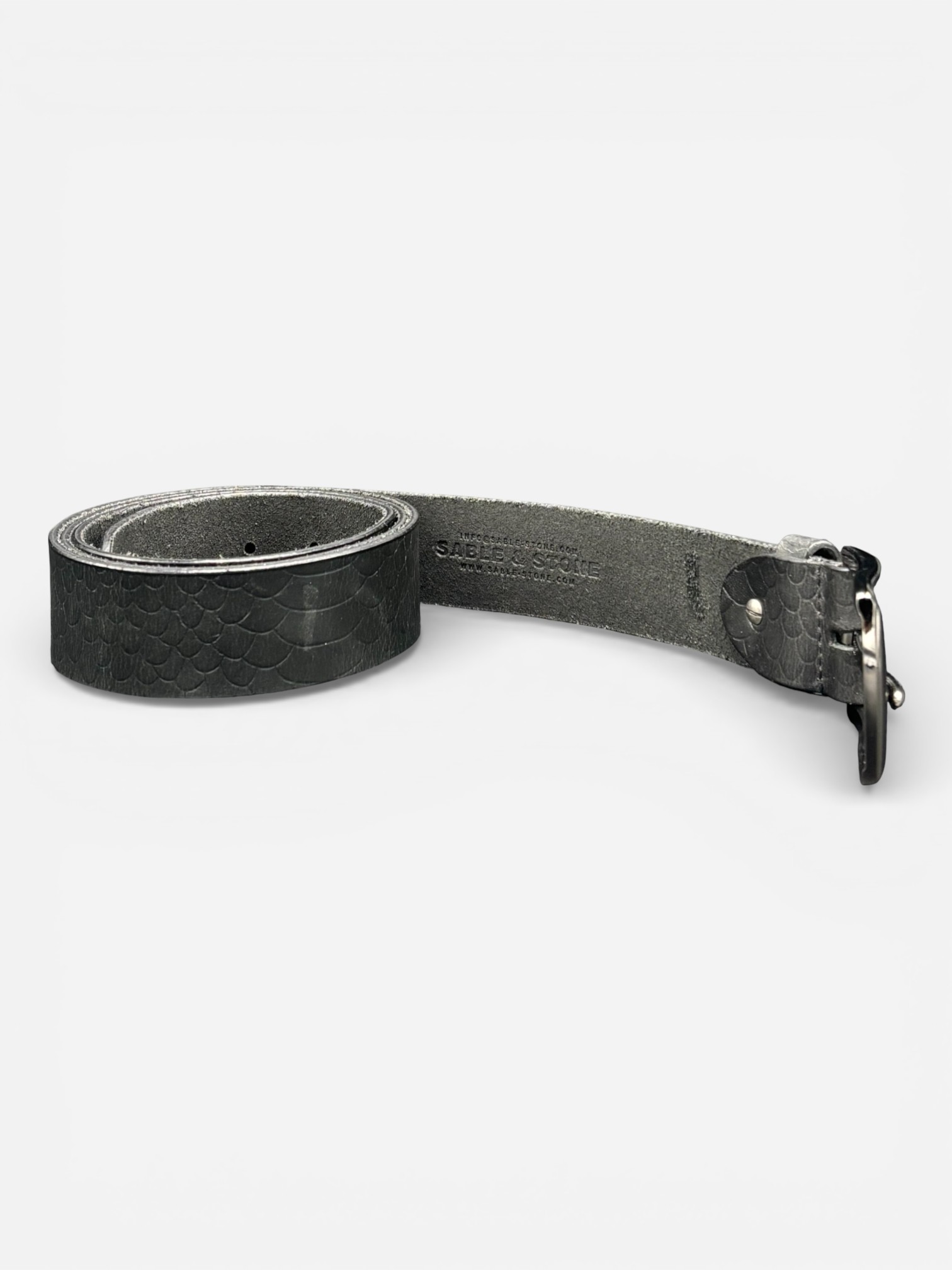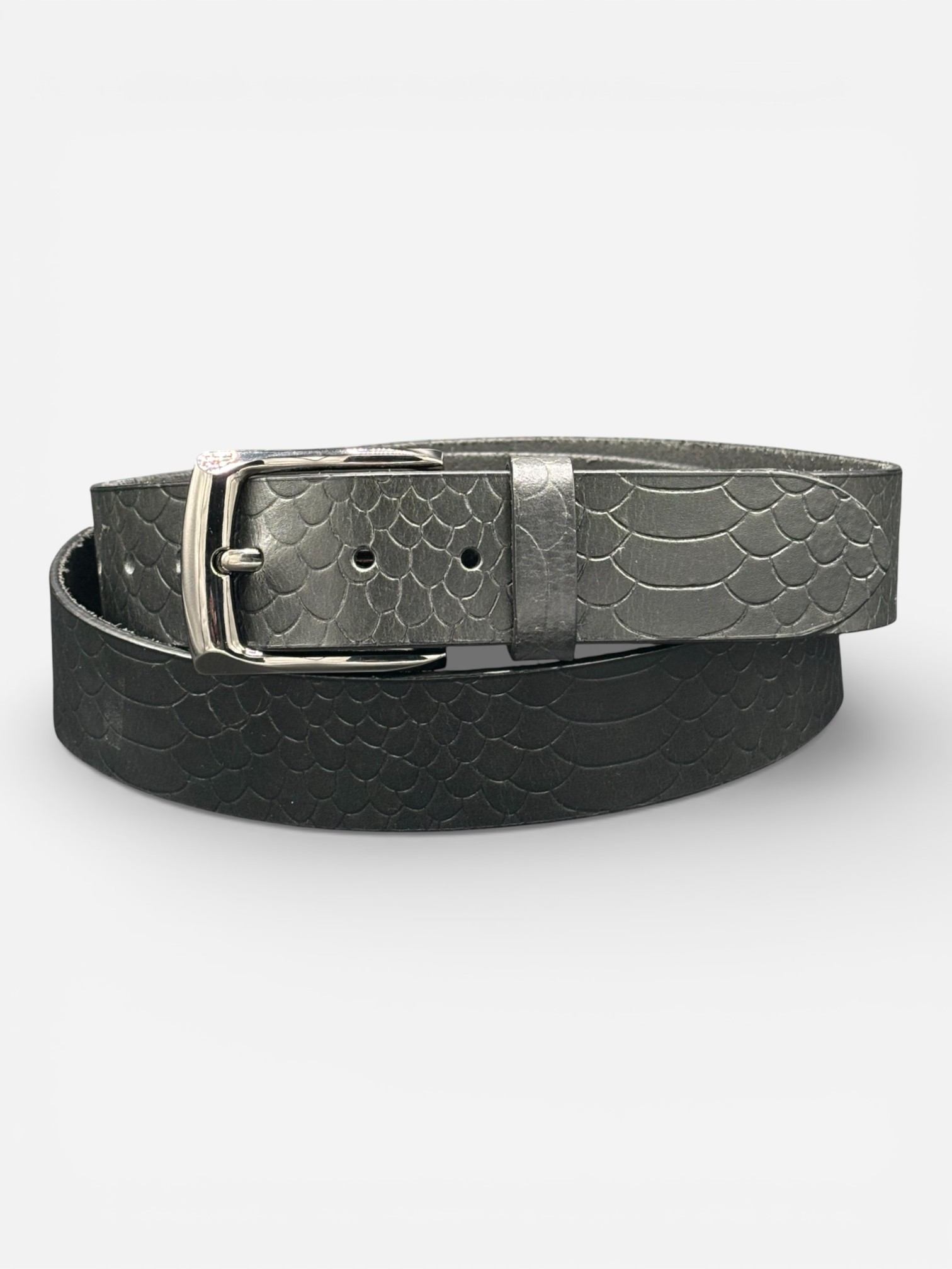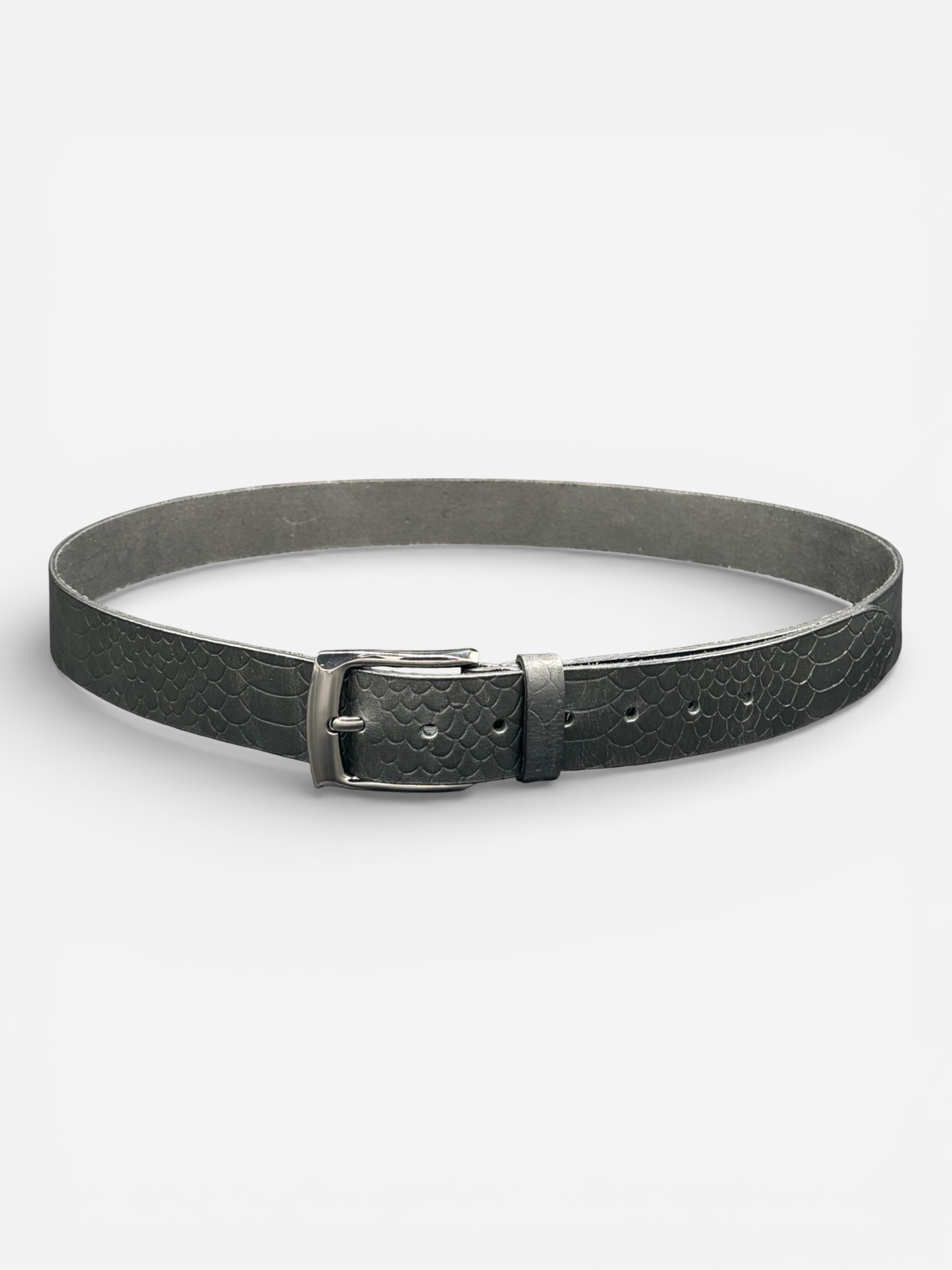 Mens Embossed Cowhide Leather Belt - Gunmetal Buckle