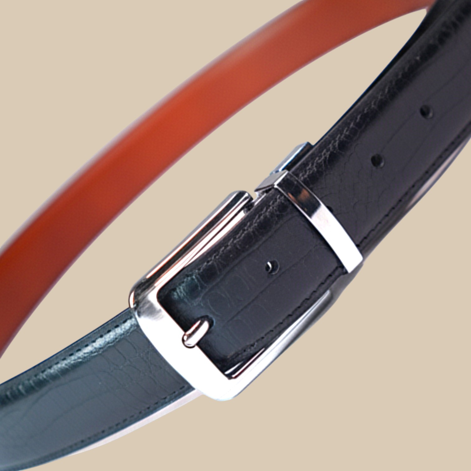 The rotating buckle has been made with care so it locks firmly in place. Switching between colors is quick and simple, and once the buckle clicks you know it is secure. The leather is smooth to the touch but firm enough to keep its structure, giving you a belt that feels comfortable while looking stylish.