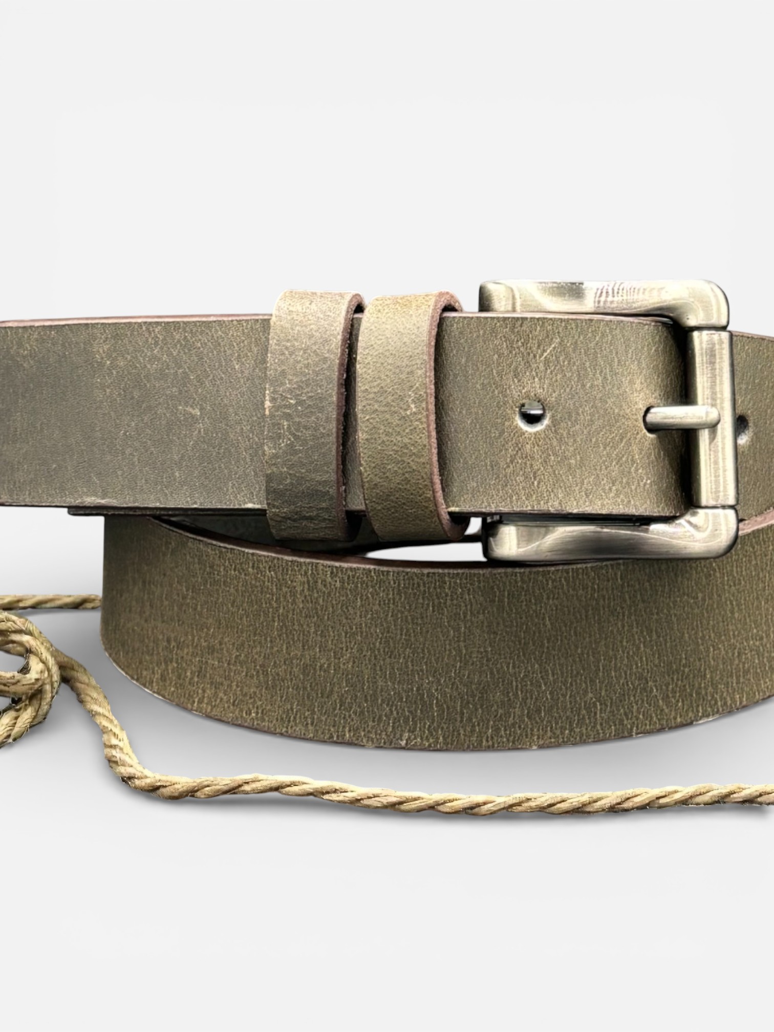 Rugged Olive Leather Belt, Steel Buckle